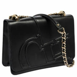 A truly elegant piece to add to your collection, this Carolina Herrera bag is crafted from quality leather and comes in a lovely shade of black. It has a front flap that has been embossed with the CH logo. The bag opens to a spacious fabric-suede interior that will hold all your daily essentials. This bag is equipped with chain handles and gold-tone hardware.