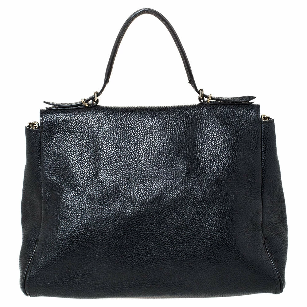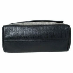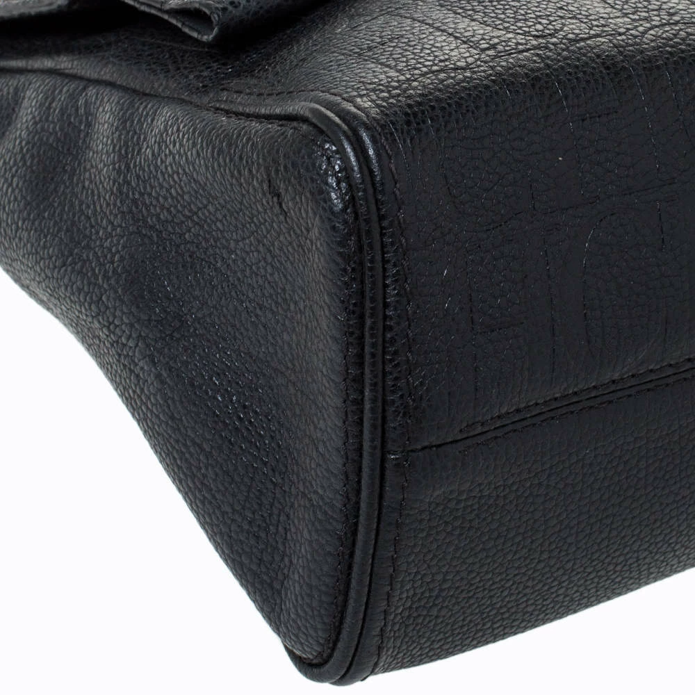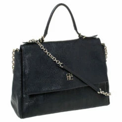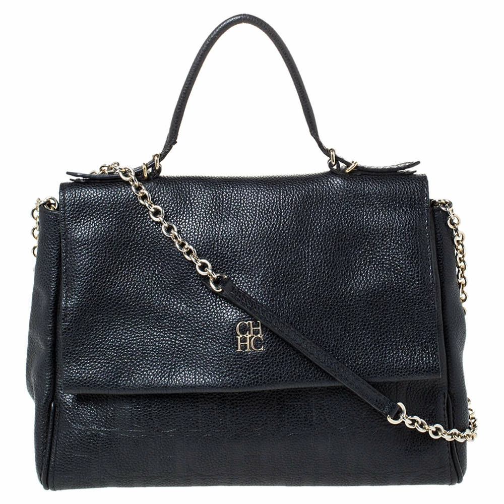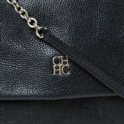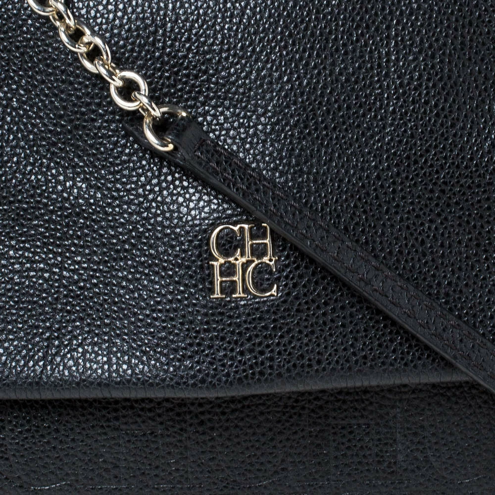 This practical and stylish bag from Carolina Herrera is crafted in black leather. It features a front flap detailed with the brand logo in gold-tone hardware. The bag comes equipped with a single handle and a shoulder strap. It has a spacious interior lined with suede.