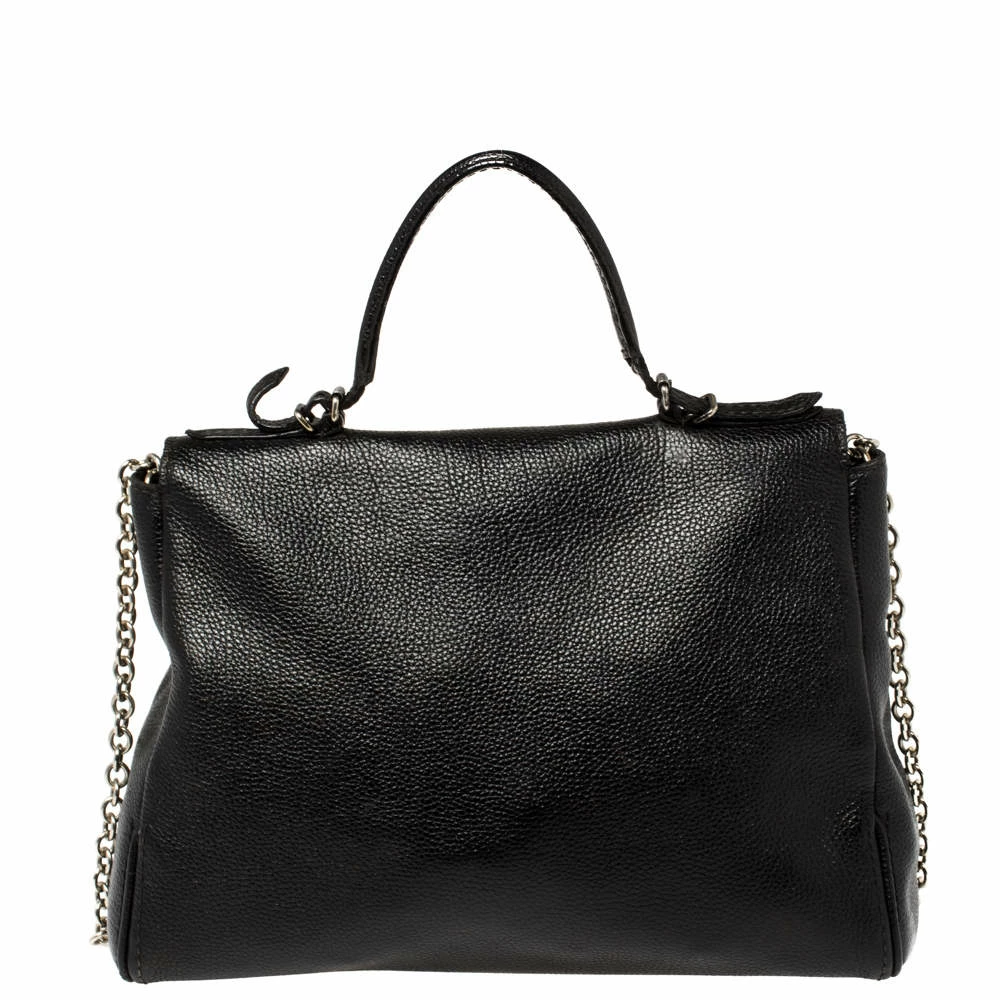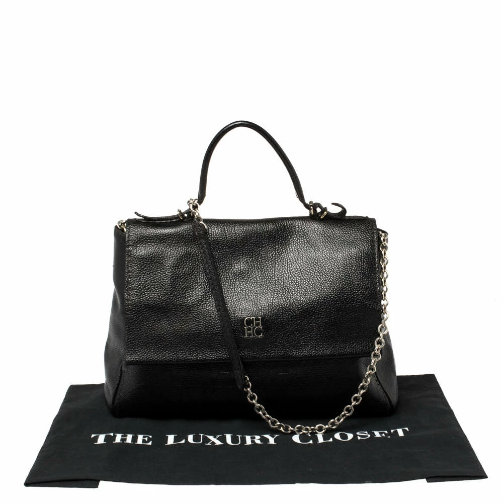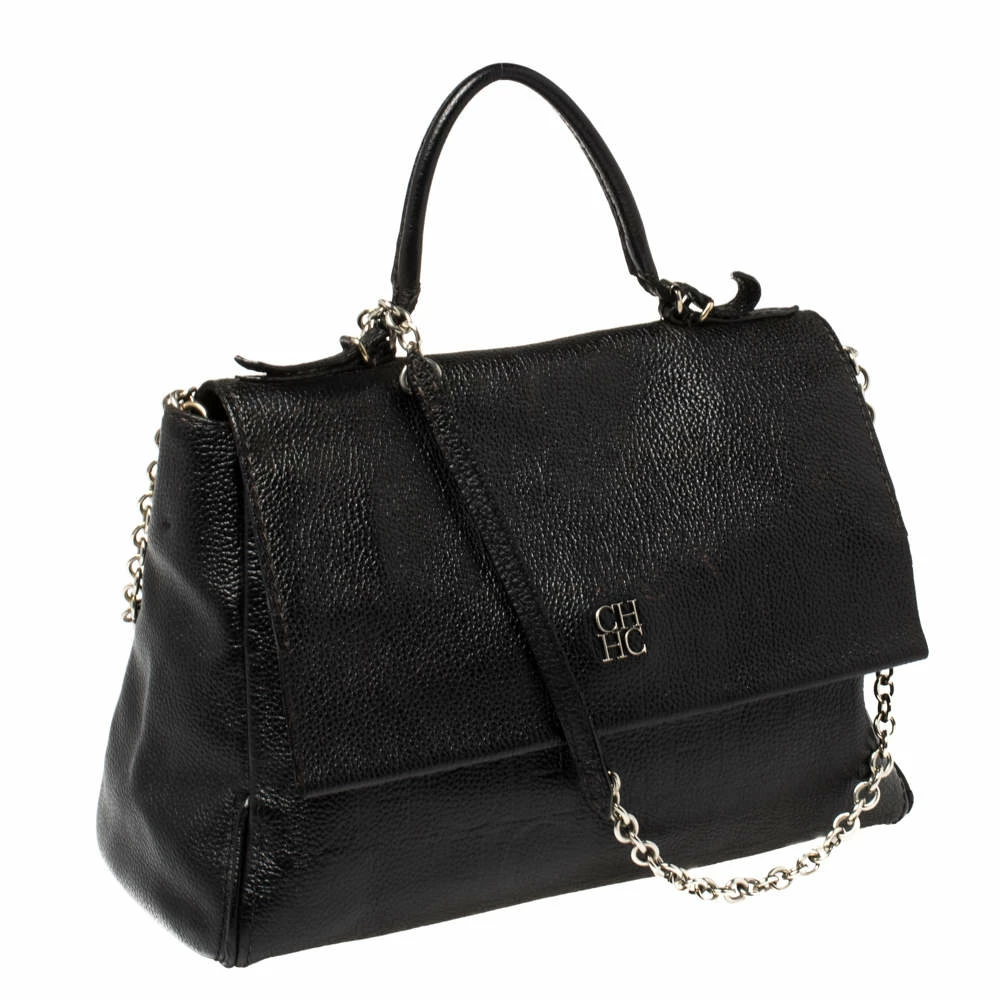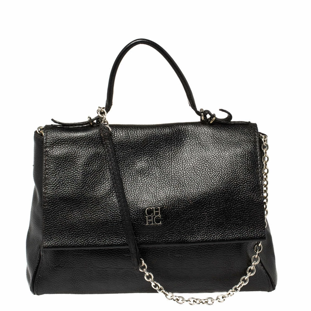 Gorgeous is the word for this Carolina Herrera Bag which is surely going to turn the spotlights on you! It has been crafted to finesse in black leather and features a top handle. A gold-tone chain strap enhances the beauty of this splendid Minueto flap bag. The flap closure with the CH-HC logo opens to a suede interior and has a slide pocket.