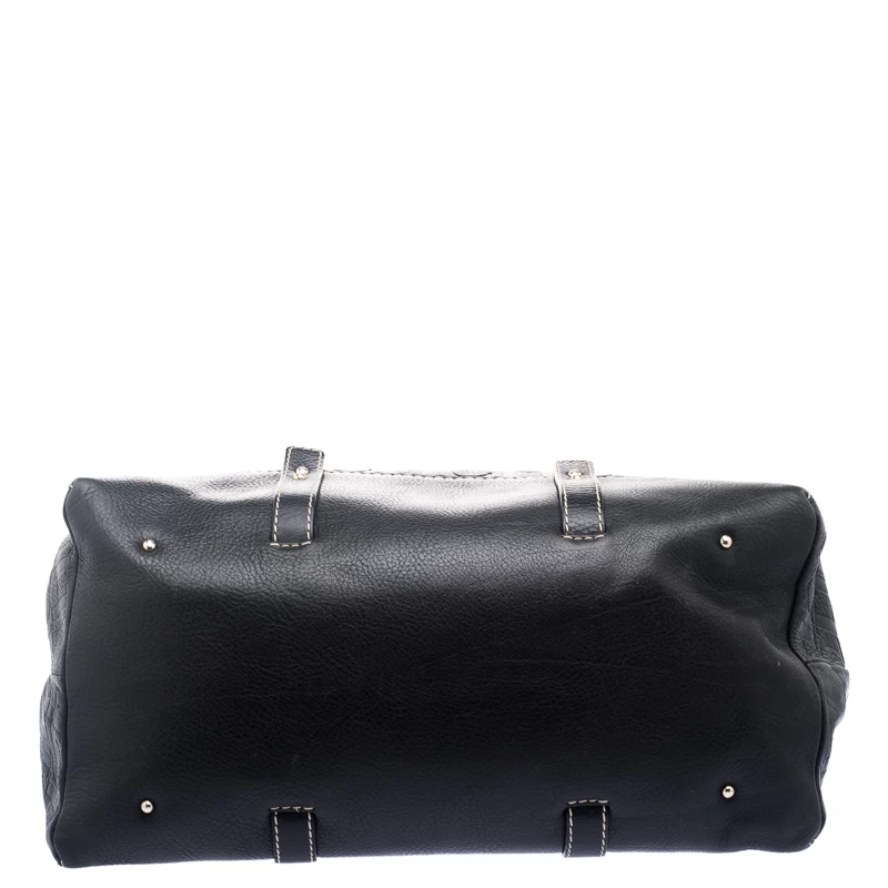This stunning black tote is from the house of Carolina Herrera. Crafted from leather, and lined with fabric on the insides, the bag features dual top handles and protective metal feet at the bottom. Swing it along to work or on a lunch with friends.