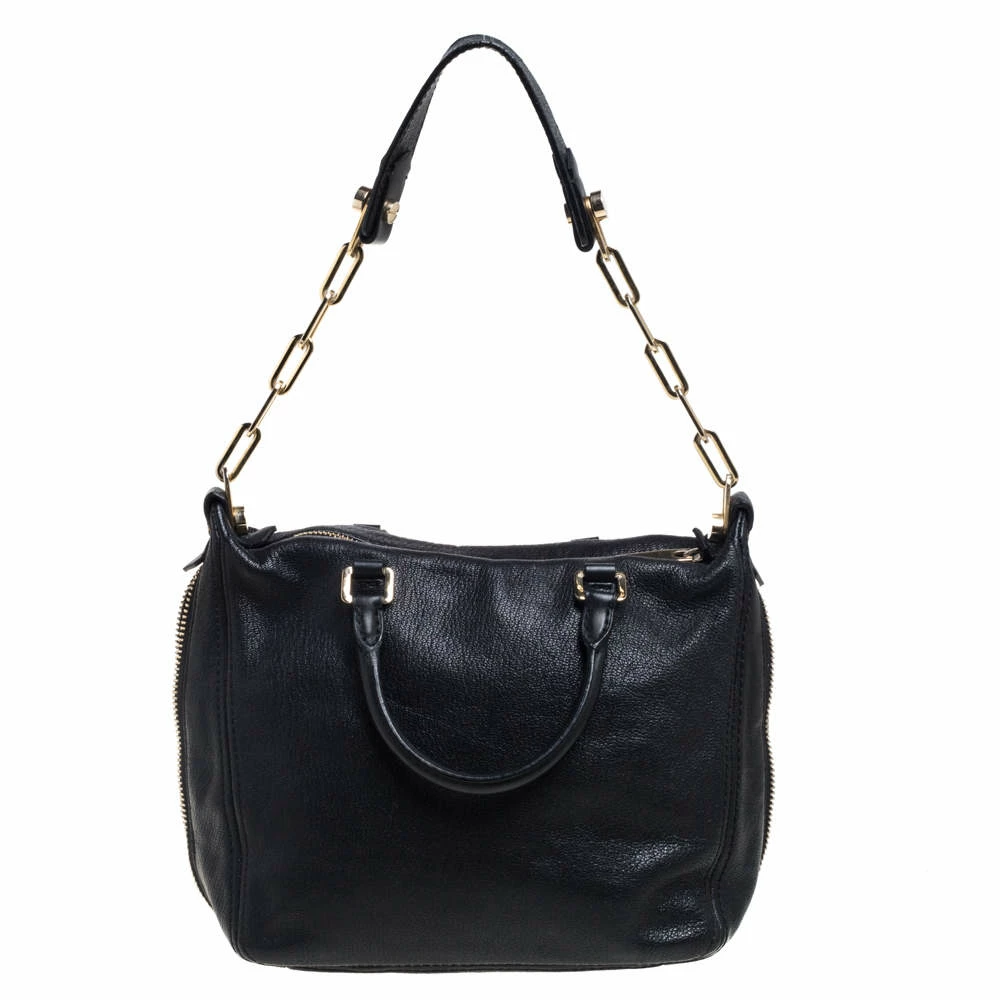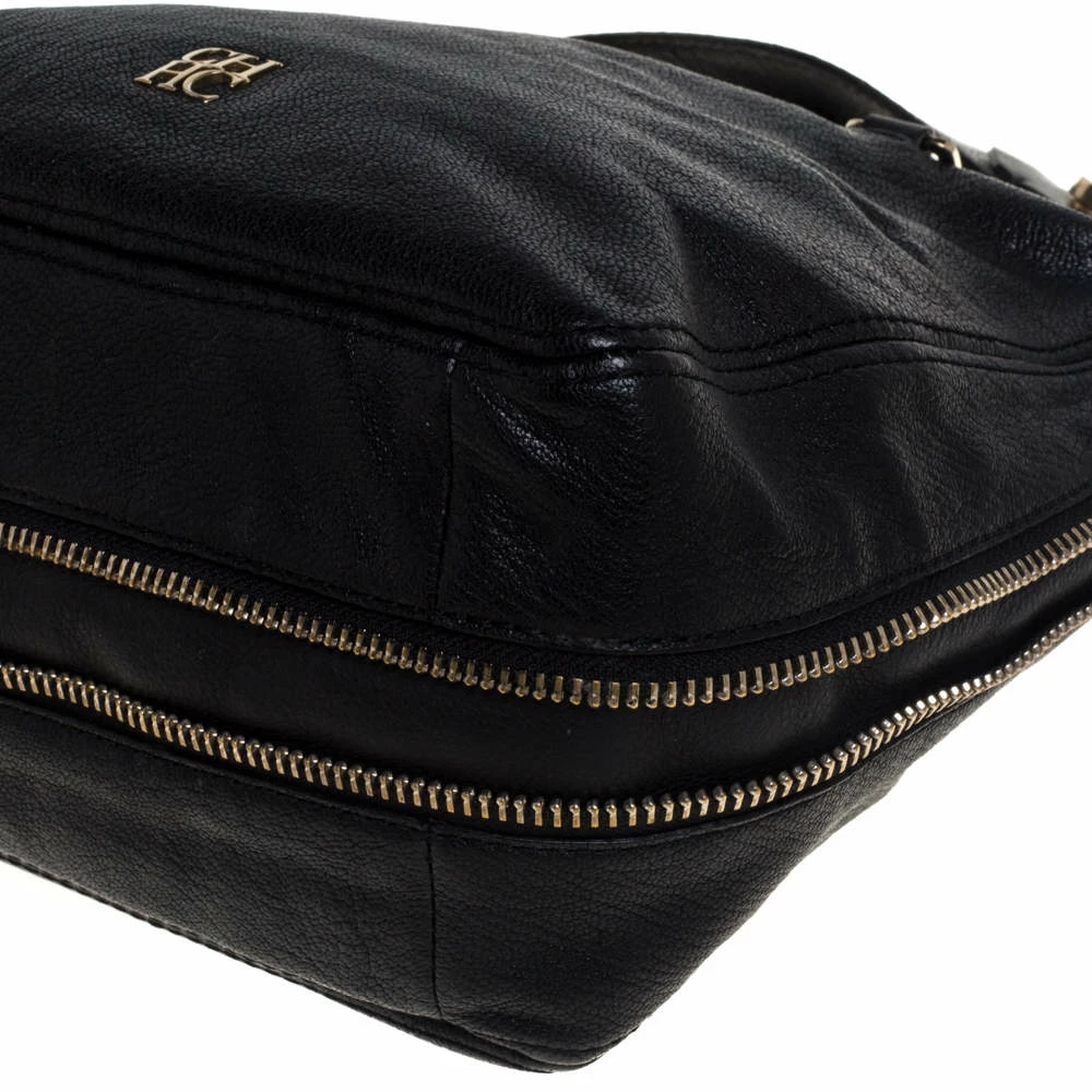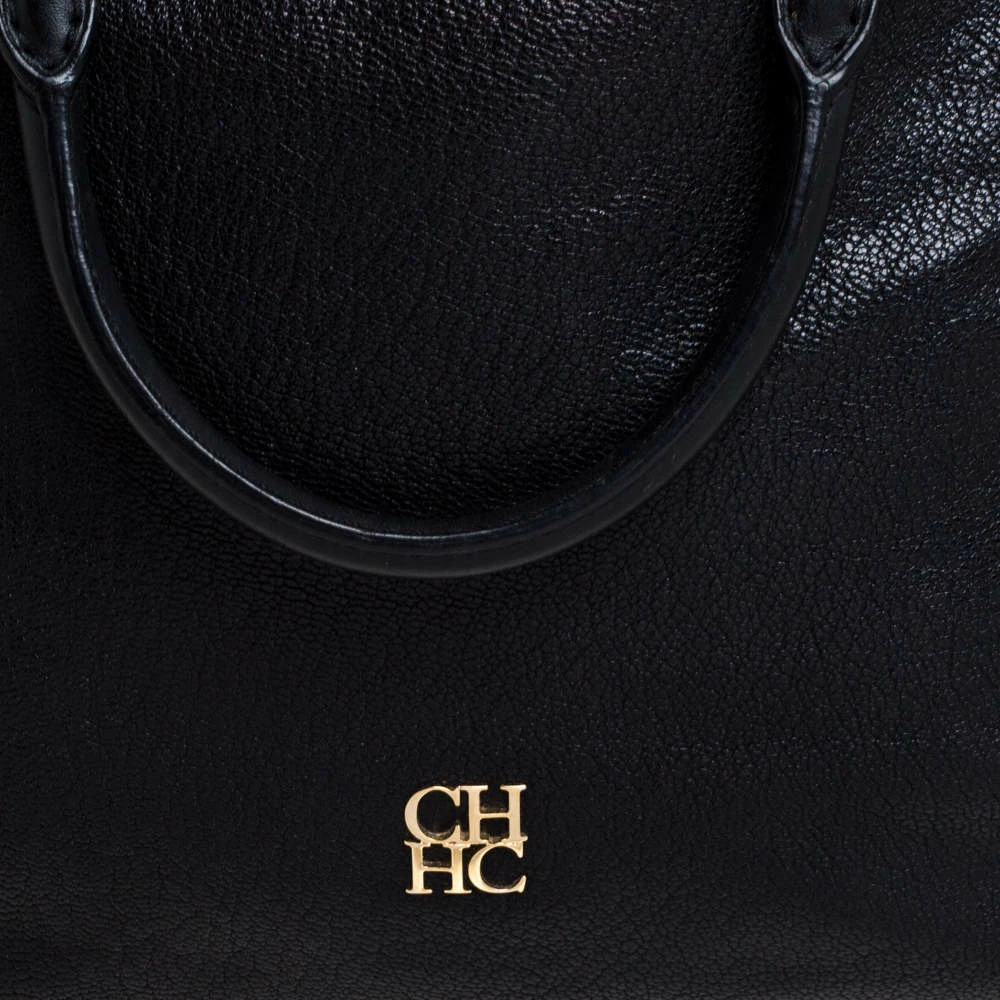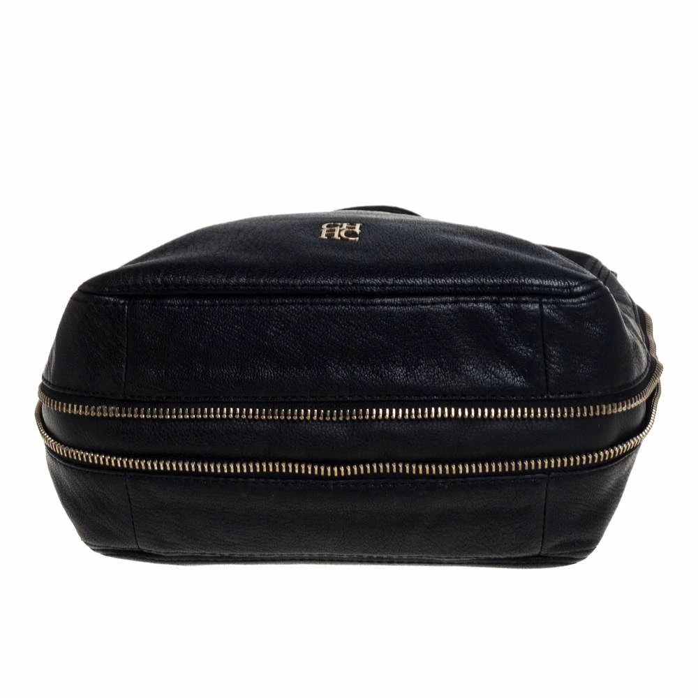 Stunning in appeal and simple in design, this satchel by Carolina Herrera will be a valuable addition to your closet. Crafted from black leather, the bag features zip accents on the contours, twin handles, and a shoulder strap. The zip closure opens to a spacious fabric-lined interior that will hold all your belongings. It is complete with brand detailing on the front.
