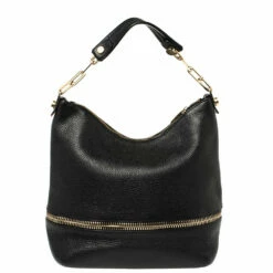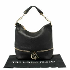 Carolina Herrera brings to you this lovely hobo that is perfect for all your fashionable outings. It is crafted from black leather and features chain trims and a logo charm on the front. It flaunts a single shoulder strap and a top zipper that opens to a spacious interior and is capable enough of holding all your daily essentials. Carry it with elan!