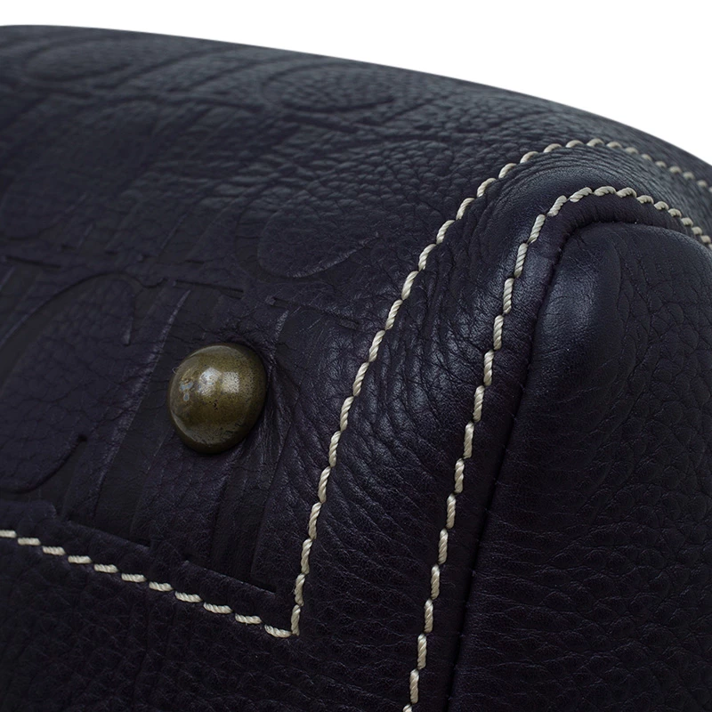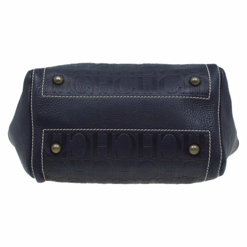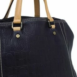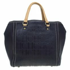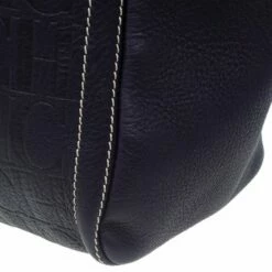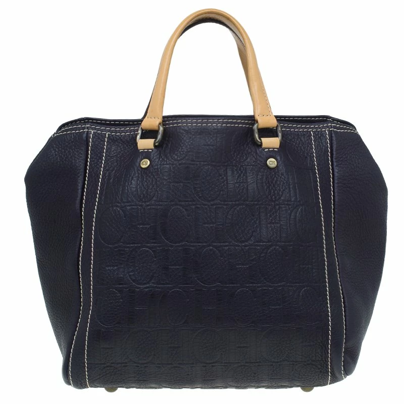 Carry all your necessities with ease and style in this exquisite Carolina Herrera Andy tote bag. Crafted from CH monogrammed black leather, it features double top leather handles and gold-tone hardware. The bottom comes secured with studs. The spacious open interior is lined with suede and features a patch pocket.