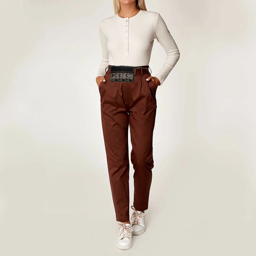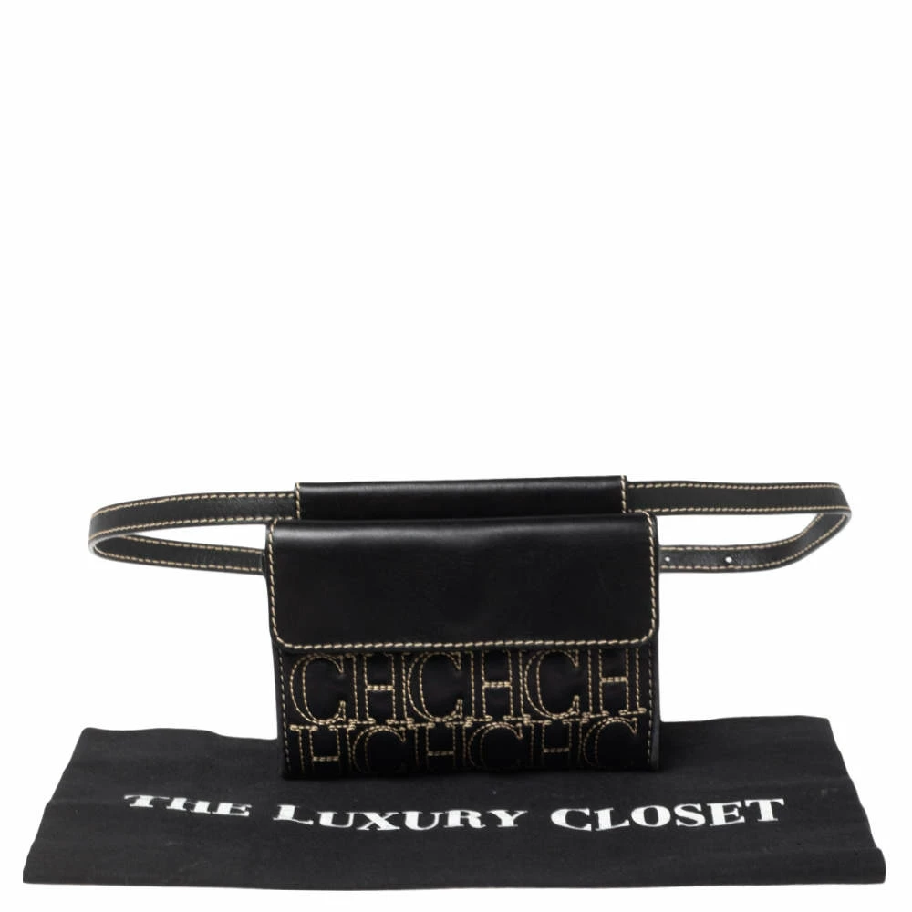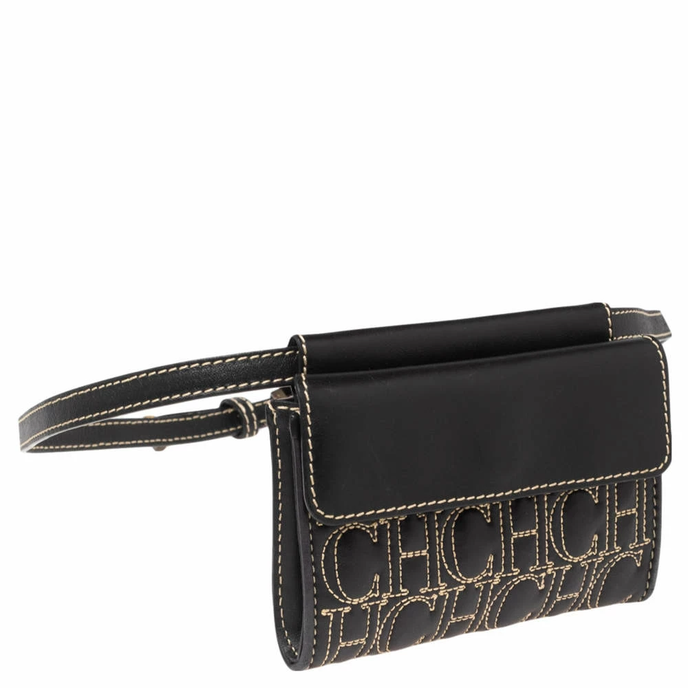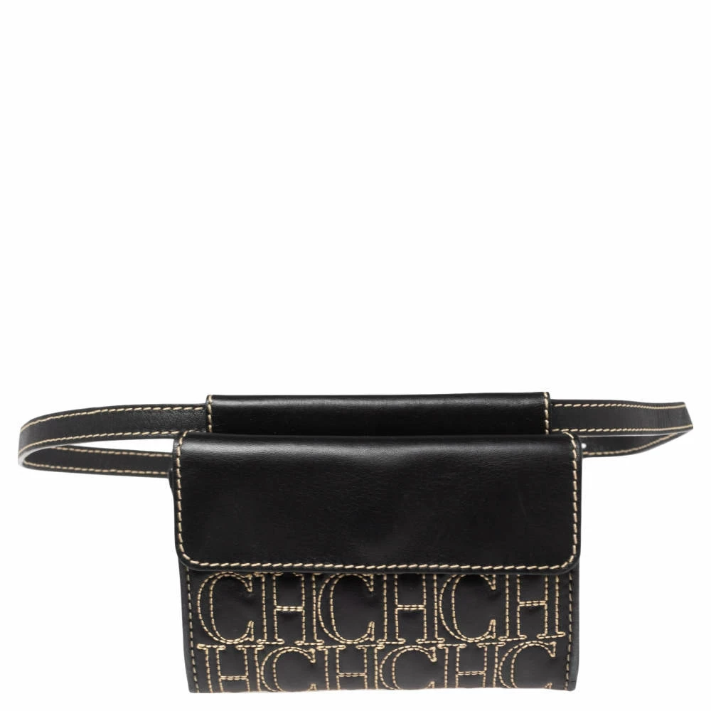 This belt bag from Carolina Herrera is exquisite. It has been crafted using monogrammed leather and comes in a shade of black. It is stylish and extremely well-made. It has a flap that leads to a fabric-lined interior for your belongings and a belt with a safety buckle.