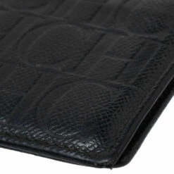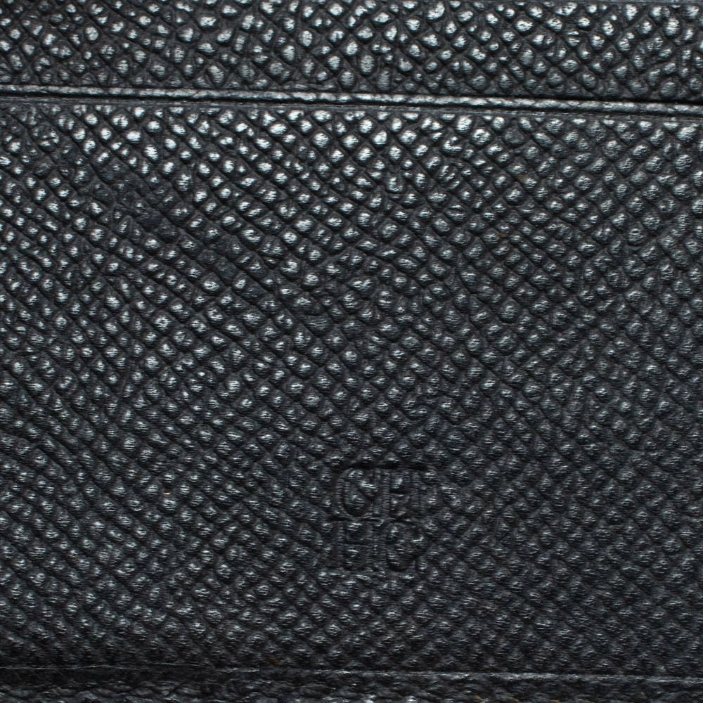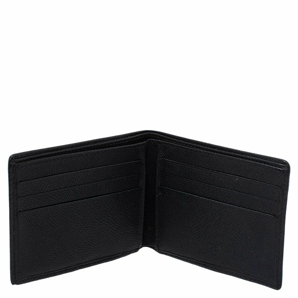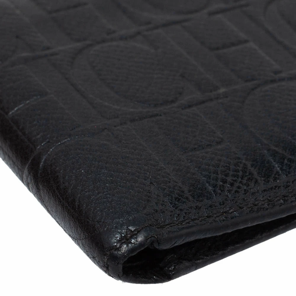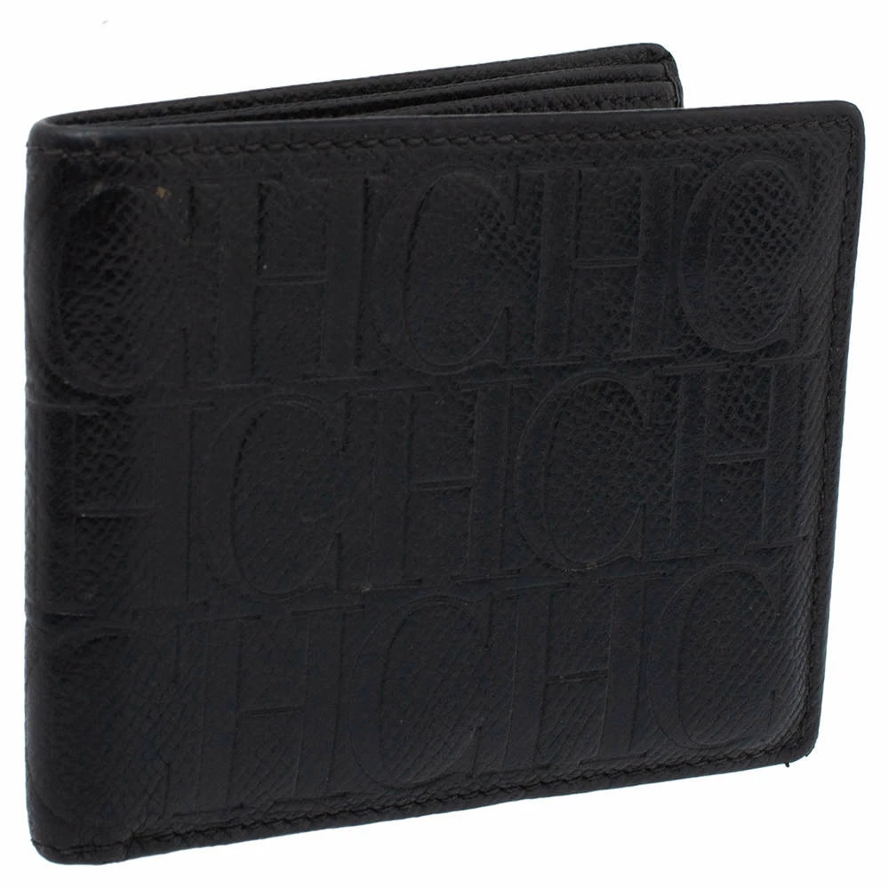 This Carolina Herrera bi-fold wallet is the most classy way to organize your essentials. The stunning black leather creation is adorned with the brand logo embossing all over and features a main compartment and multiple card slots to keep your cards and cash in place.