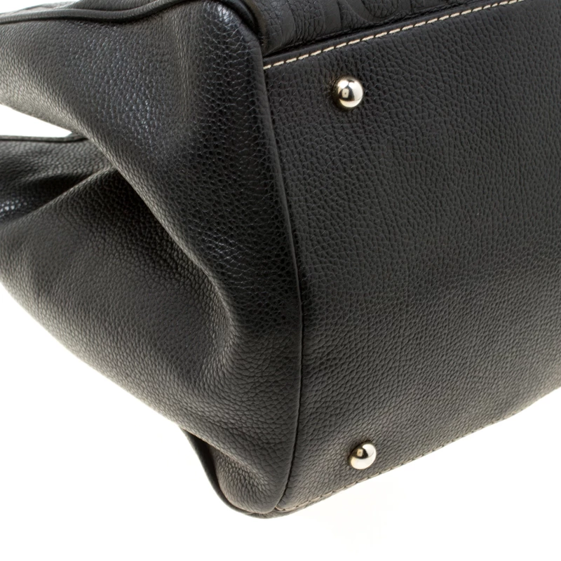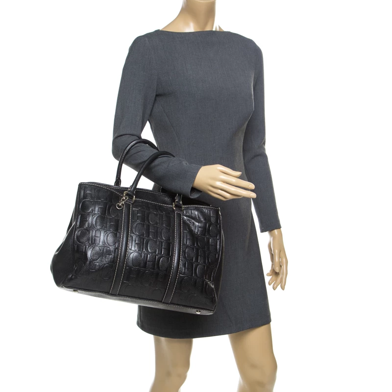 Crafted by the finest Carolina Herrera’s Matteo tote lives up to its reputation. The black exterior is covered in monogram leather and the bag comes with dual top handles. The tote has an open top that leads to a fabric lined interior housing a zipped compartment.