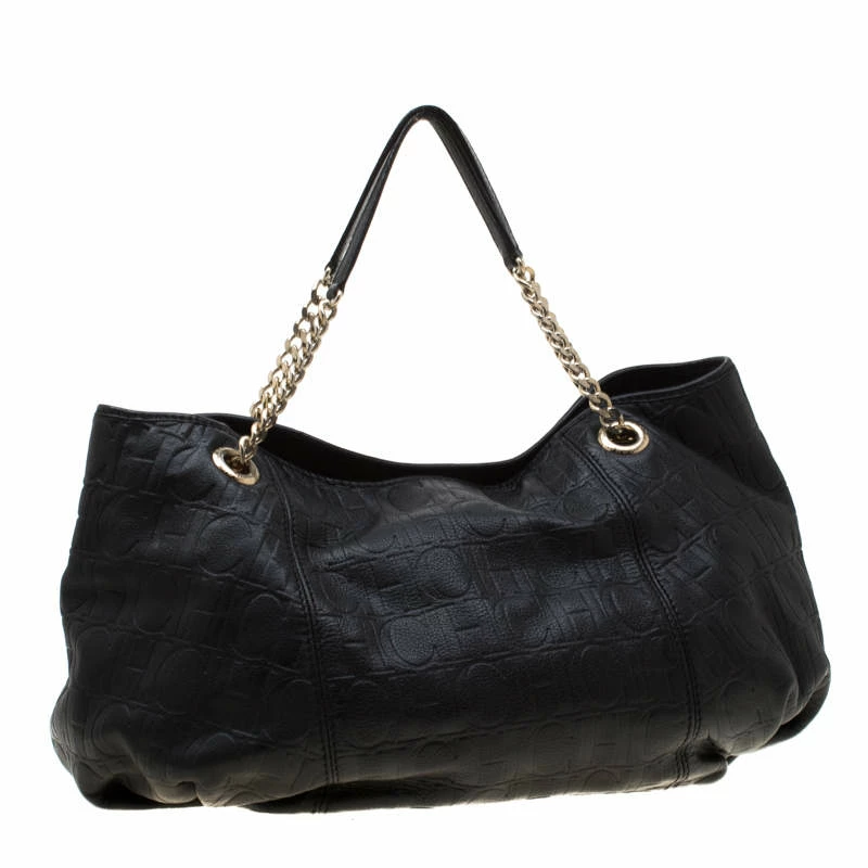 This Poppy hobo by Carolina Herrera combines function and fashion. Crafted from monogram leather, the bag features a spacious fabric interior. The hobo flaunts a classy black shade and it is held by two chain handles.
