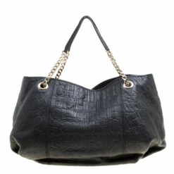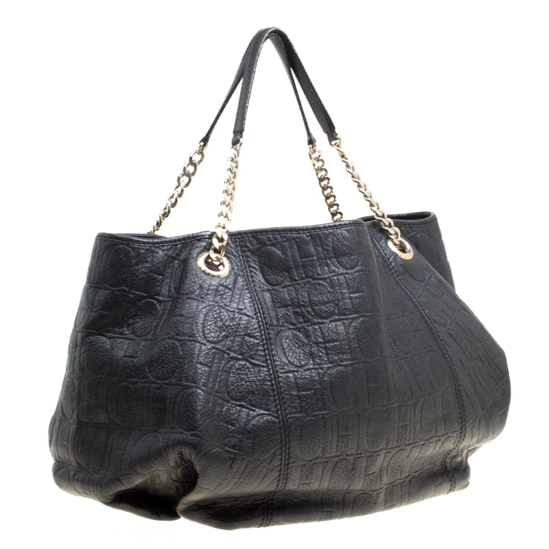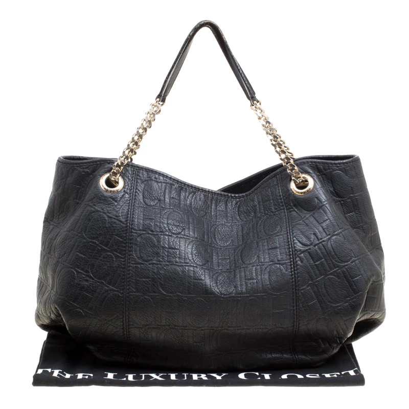 This shoulder bag from Carolina Herrera has been crafted from monogram leather and designed with a well-sized fabric interior. It is held by chain handles with leather rests for an easy carrying experience. This bag is not only high in style but also in durability.
