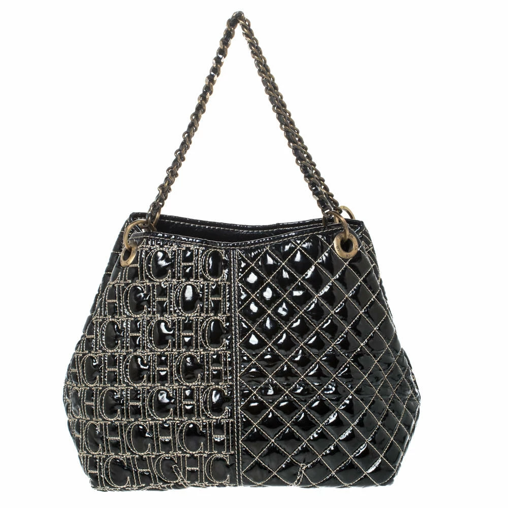 Carolina Herrera brings to you this fabulous black-hued piece. Crafted from Monogram patent leather, the bag features dual chain handles and a quilted exterior. The nylon-lined interior is spacious and will hold all your necessities. It is finished with gold-tone hardware.