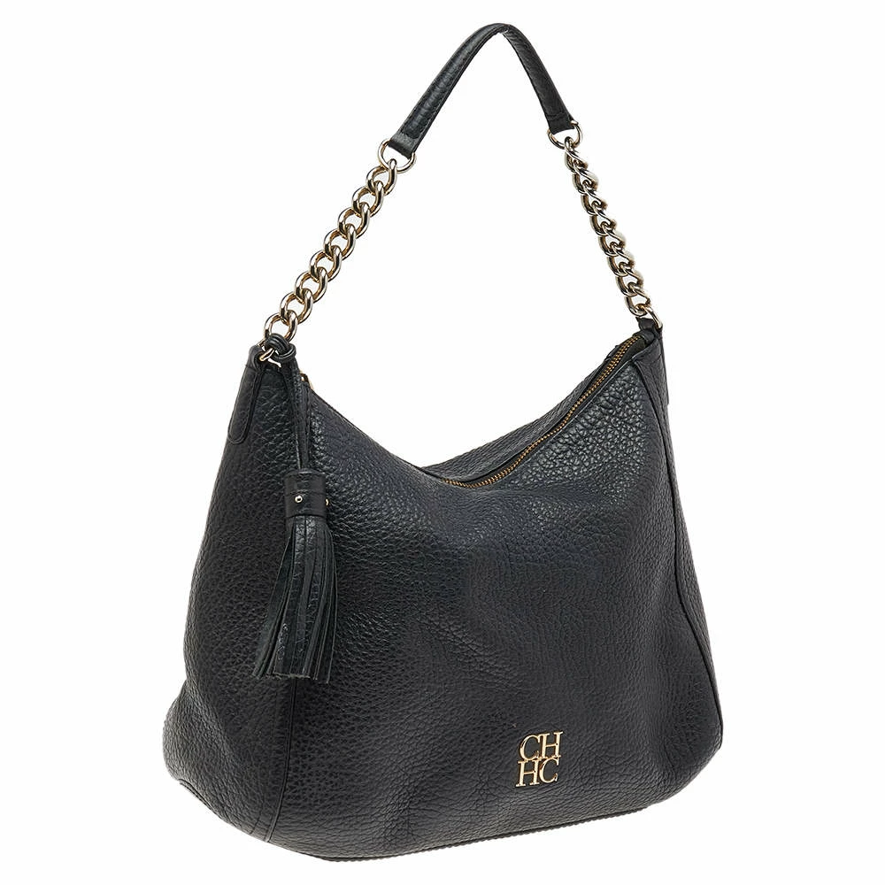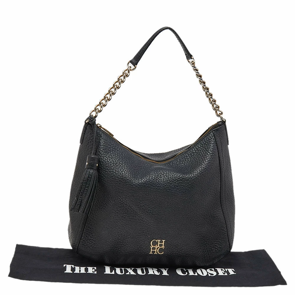 An easy-going and stylish bag like this Carolina Herrera bag makes an ideal everyday choice. It is impeccably designed in a black pebbled leather body and comes with a gold-tone chain strap. It is detailed with a top zipper closure and features the ‘CHCH’ logo on the front. The spacious, fabric-lined interior can hold all your essentials with great ease.
