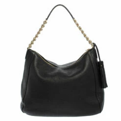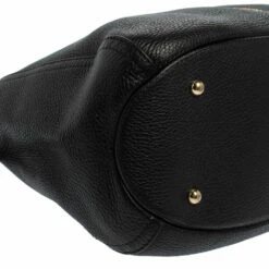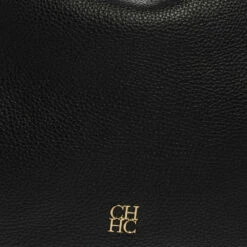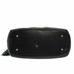 Designed from versatile black leather, this Carolina Herrera bag will go with all your ensembles. It features a pebbled leather body secured with top zipper closure and held by a single shoulder strap. It comes equipped with a fabric interior, protective metal feet, brand logo on the front, and tassel detailing.