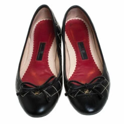 These ballet flats from Carolina Herrera are simple yet stylish. Crafted from quilted leather, these flats carry a black exterior with round toes and bows. They are complete with comfortable insoles. Walk in them and you are sure to have a stylish day.