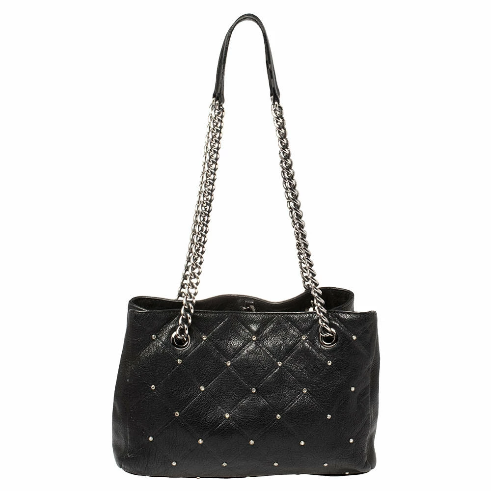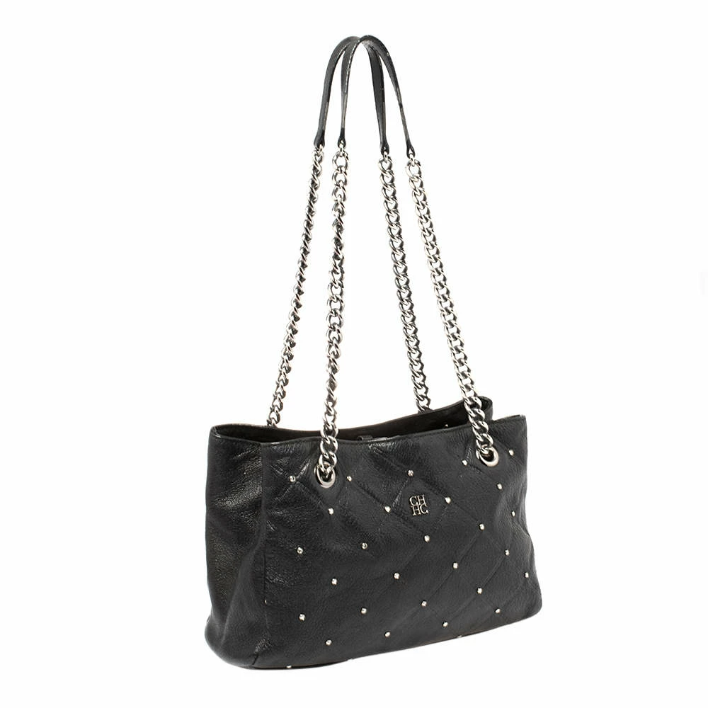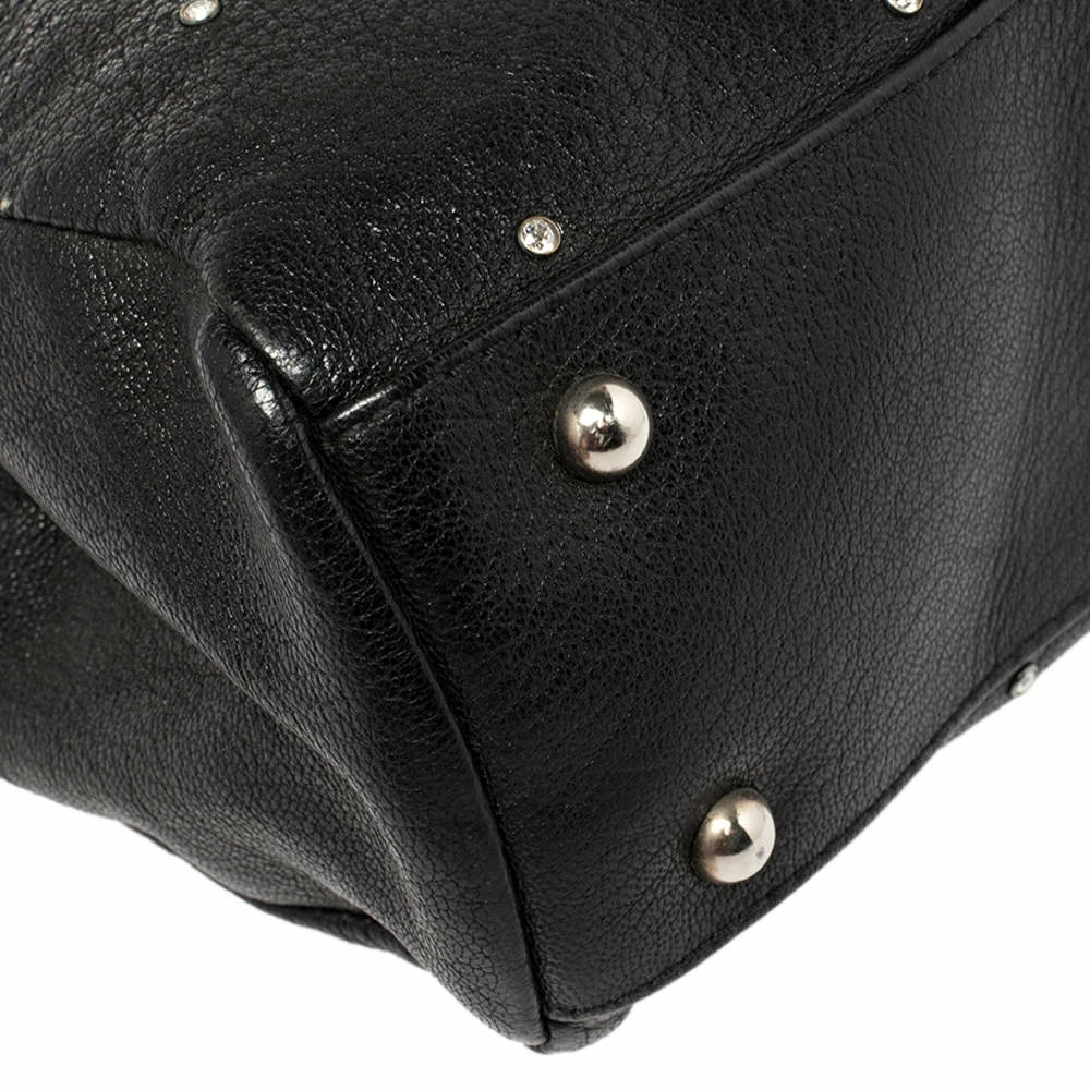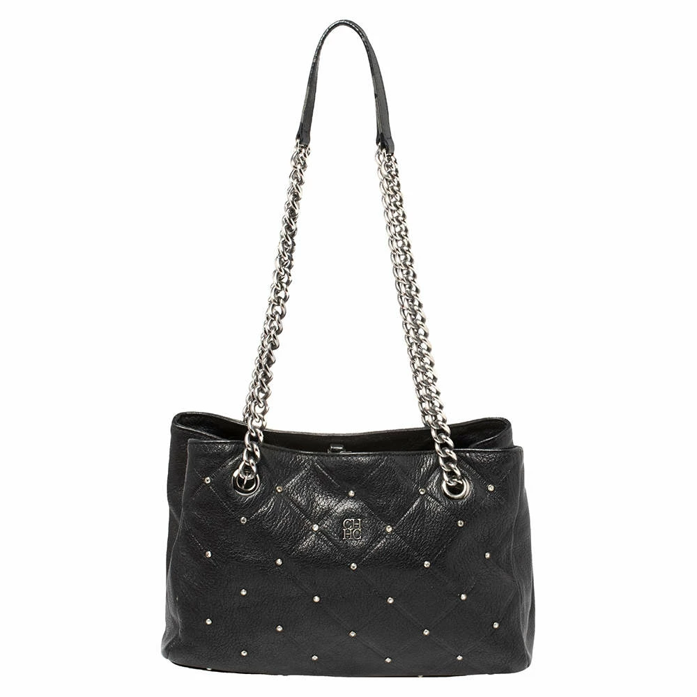 This tote from Carolina Herrera is a timeless piece. The bag comes in a luxurious quilted leather exterior with crystal accents and a silver-tone brand logo at the front. It features double top handles and protective metal feet at the bottom. The fabric-lined interior houses zip pockets and will easily hold your daily necessities.