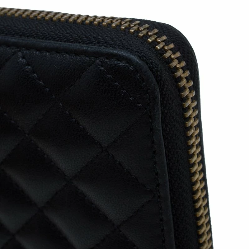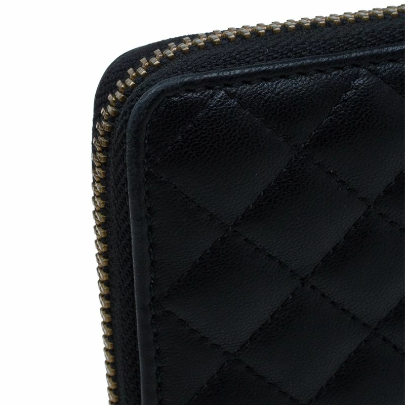 To own this Carolina Herrera Wallet is completely worth to spend on! Crafted with black leather, it is accented with quilted details and gold-tone hardware. The zip enclosed leather-lined interior houses twelve card slots and a zipped compartment.