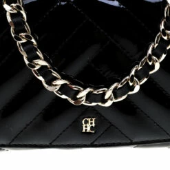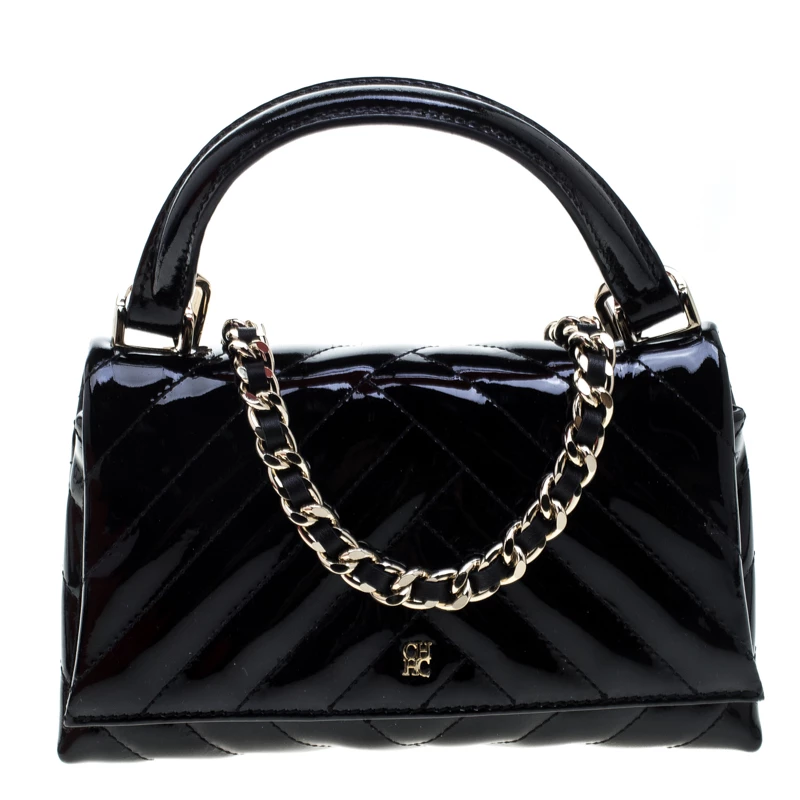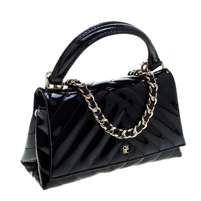 Carry it with your elegant party outfits and even pair it with your formal looks, this beautiful Carolina Herrera bag is a fashion must-have. Crafted in black quilted patent leather, this bag features a single top handle and detachable strap for your convenience and to create versatile looks. Designed with a flap detailed with logo accents, this bag can fit all that you need through the day.