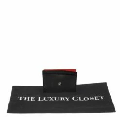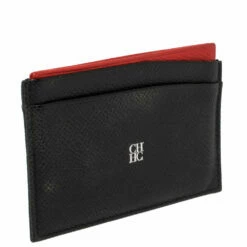 This Carolina Herrera leather card holder comes in a simple style with nylon-lined slots to carry your important cards easily. This black/red cardholder is a durable accessory.