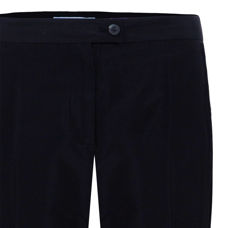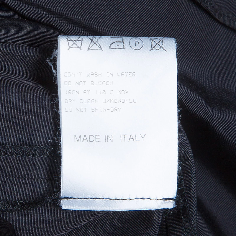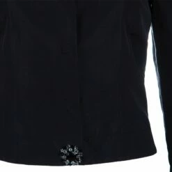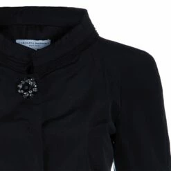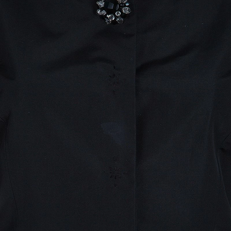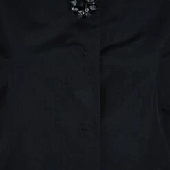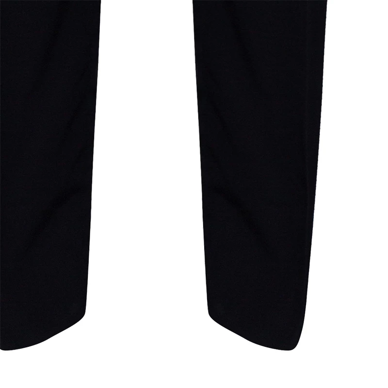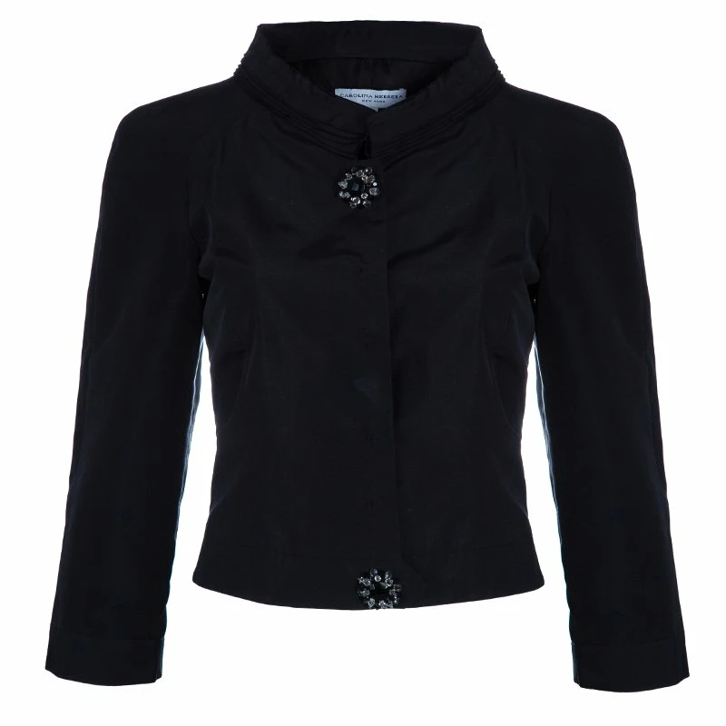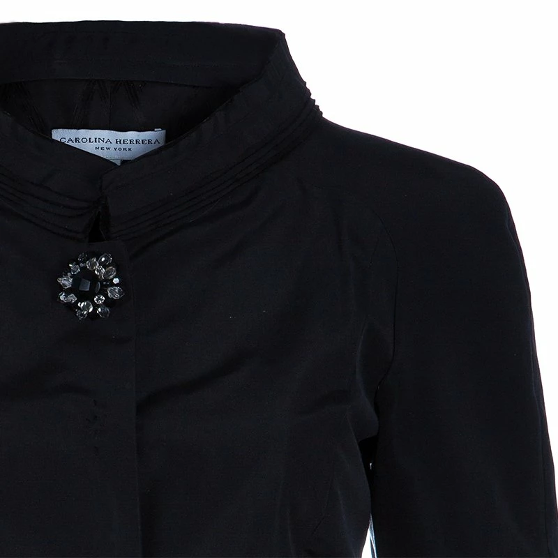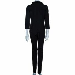 Smart and elegant, this two-piece from Carolina Herrera is perfect for transitioning from the office meetings to dinners with colleagues. Made from black cotton and silk blend, the jacket is adorned beautifully with stone embellishments and comes with closed neck, concealed front closure and long sleeves. The slim fit trousers are equipped with belt loops, button fastening and a zipper fly.