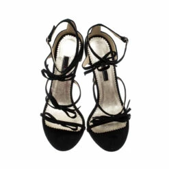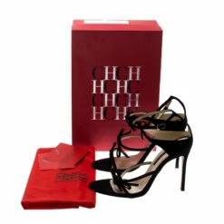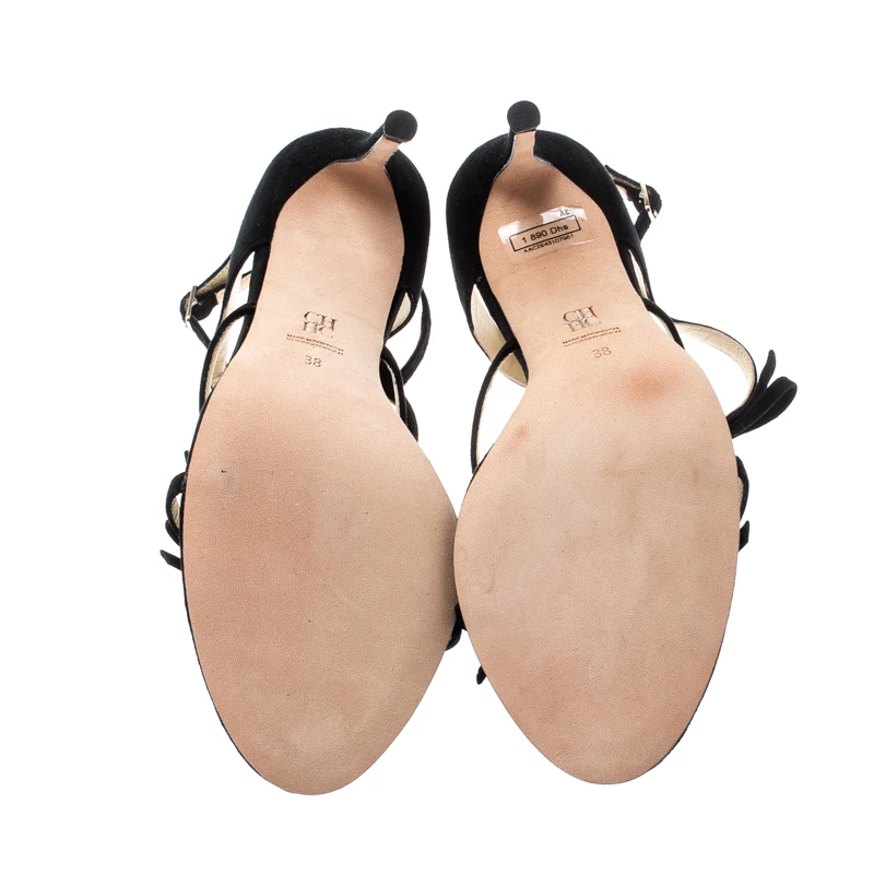 Black suede sandals by Carolina Herrera are for those nights where you want to go that extra mile and look exquisite. This pair of sandals feature three bow detailed-straps on the vamps for that perfect feminine feel. Also featuring a leather-lined insole with black toe cap, these sandals are surely eye-catching, versatile, and unique.