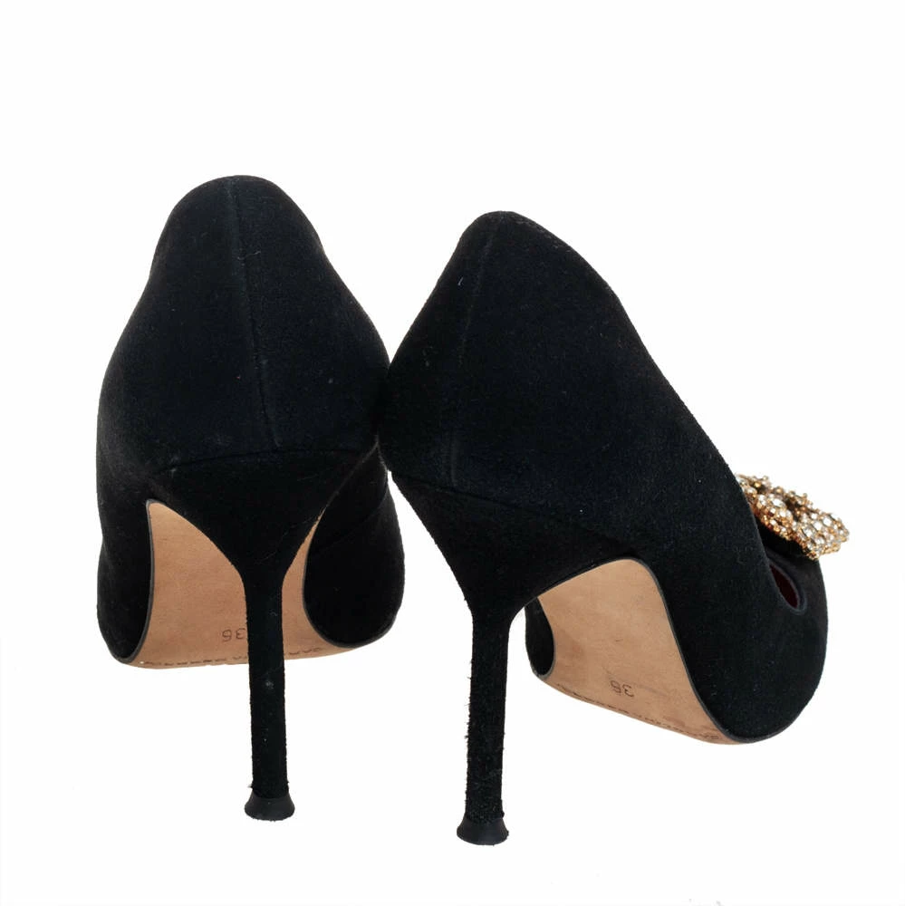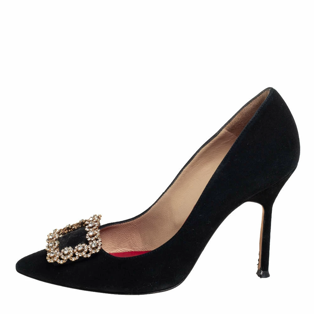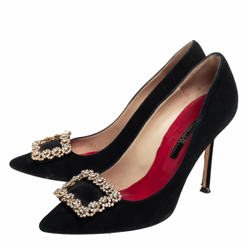 Carolina Herrera is well-known for her graceful designs, and her label is synonymous with opulence, femininity, and elegance. These pumps are crafted from suede into a pointed toe silhouette augmented by the embellishments perched on the uppers. They are elevated on 10 cm heels and can amp up your look instantly.