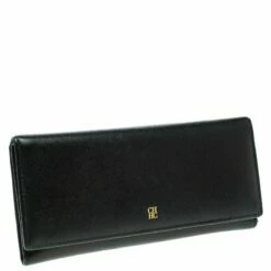 Leather wallets are a true sign of style and reliability. This high quality leather wallet from the house of Carolina Herrera, is sleek and sophisticated. Styled as a tri-fold wallet, this creation has multiple slots, a pocket with gold-tone zipper and the signature CH logo at the front.
