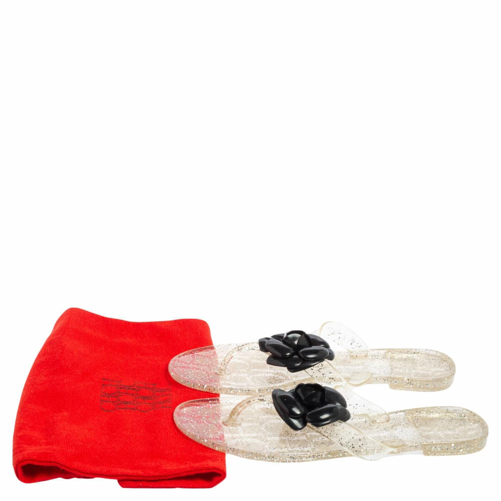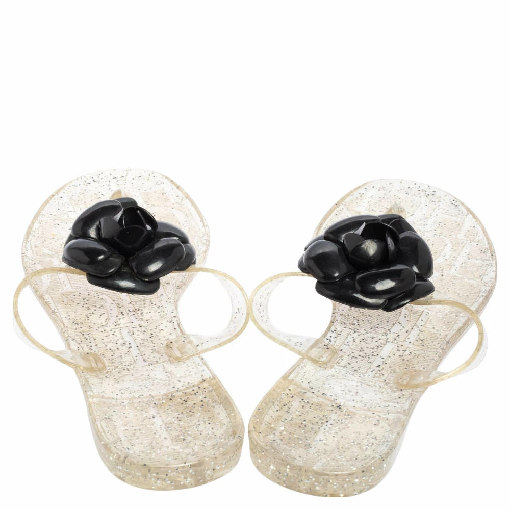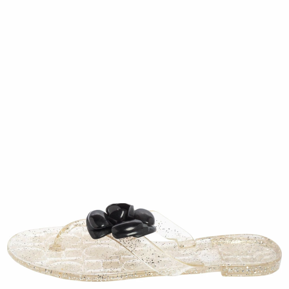 These chic Camellia sandals from Carolina Herrera are a perfect option while choosing footwear for any occasion. They have been crafted with black-transparent jelly material. These thong sandals are just what you need to keep your feet comfortable.