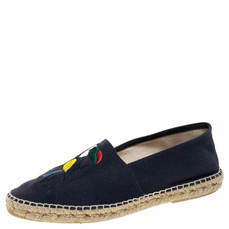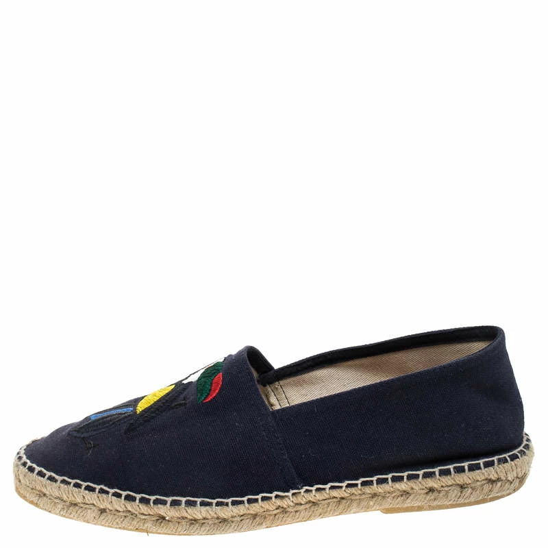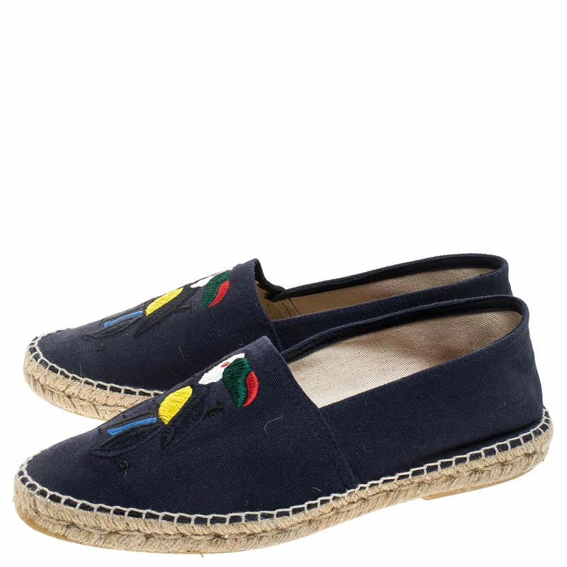 These classic flats by Carolina Herrera are a closet staple for any woman. They are ideal for those days when you have to spend long hours outdoors. Crafted from blue canvas, these espadrilles feature embroidery detail on the uppers. Lined with canvas, these rubber-soled flats are playful and keep your feet looking pretty.