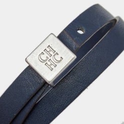 This Carolina Herrera blue double wrap bracelet exhibits the label’s classic sophistication. Crafted from leather, this accessory features a silver-tone metal closure engraved with the CH logo for a signature finish.