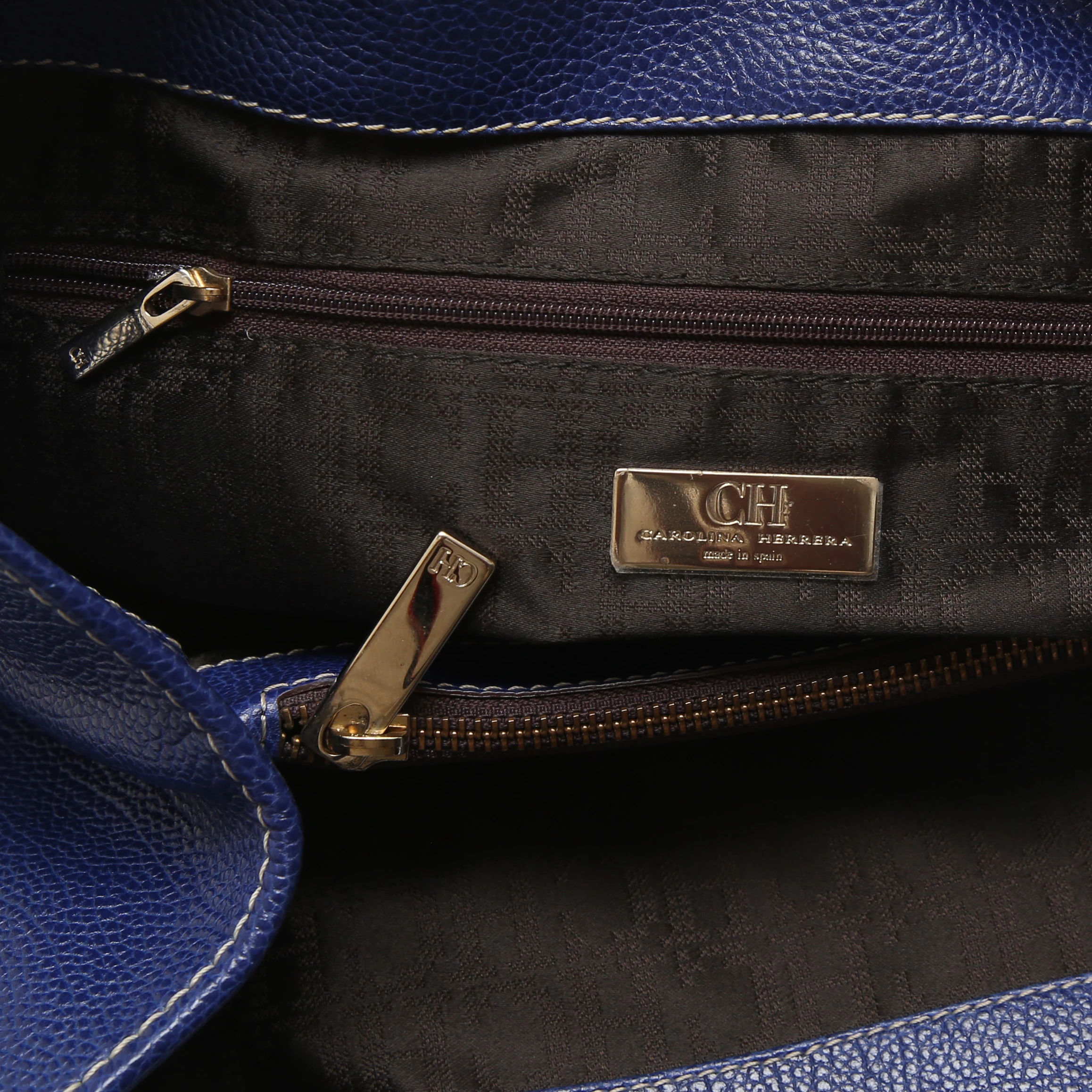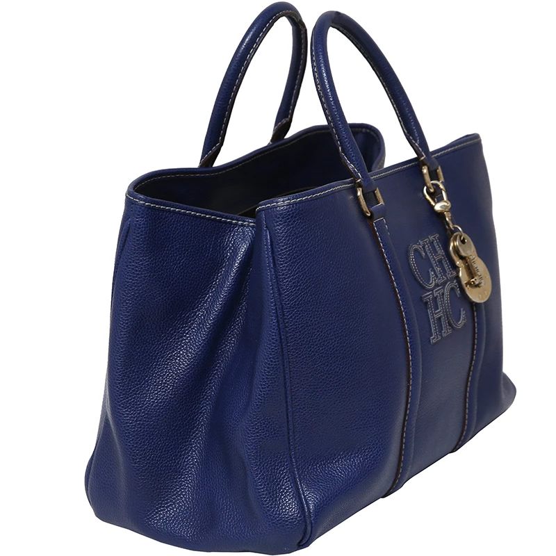 Featuring a structured silhouette, this Carolina Herrera Matteo Tote is perfect for day outings. It is designed from a blue leather body detailed with contrast stitching and comes fitted with two rolled top handles. It comes detailed with the ‘CH’ logo charms in gold-tone that add to the elegance of the bag. It opens to a neatly compartmentalised interior with zipper pockets to stow your essentials in an organised manner.