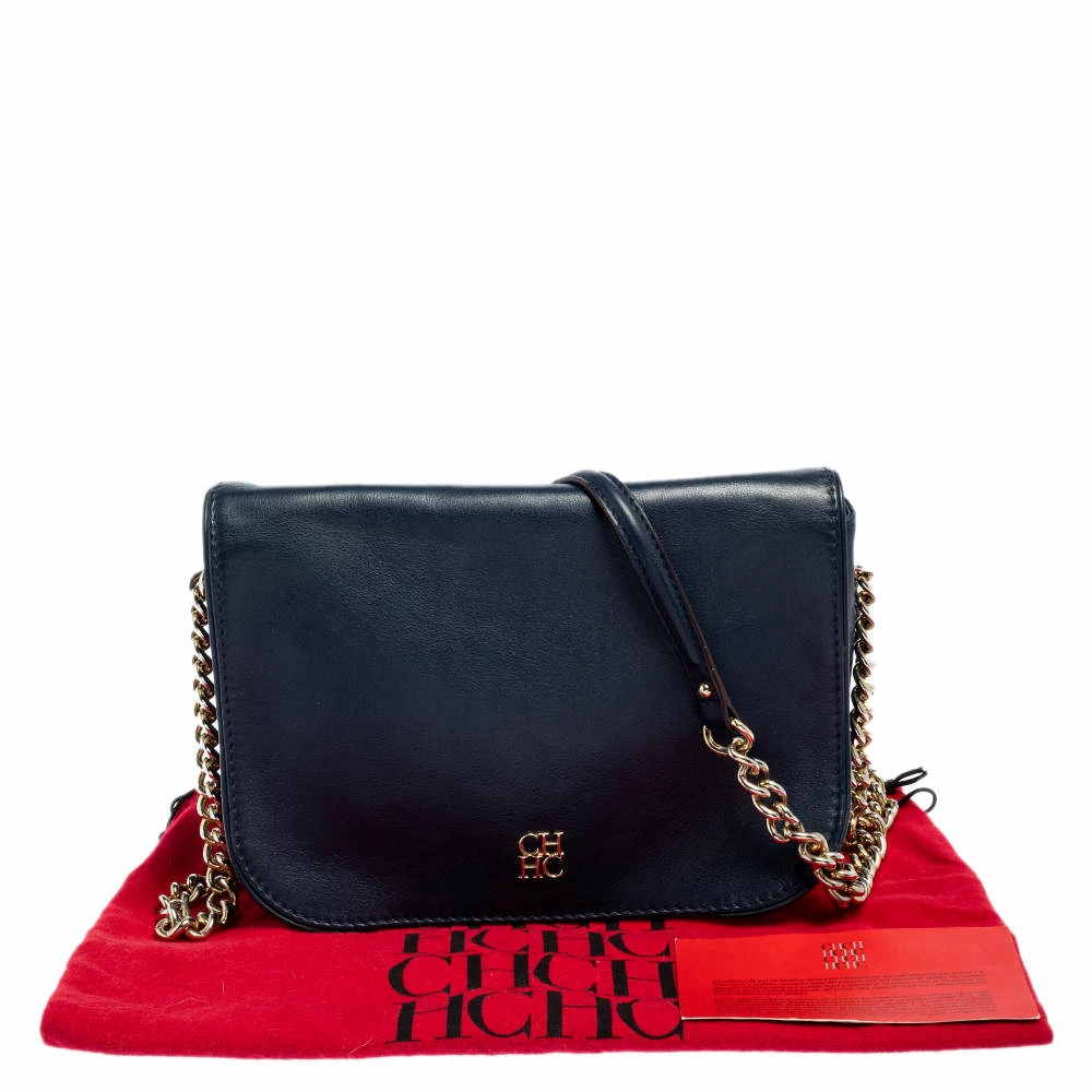 The house of Carolina Herrera has exclusively designed this elegant bag for you. It has been crafted from blue leather and adds a chic appeal to any ensemble. It has a front flap with the ‘CH’ logo that opens to a fabric-lined interior. It is complete with a shoulder strap and detailed with gold-tone hardware.