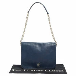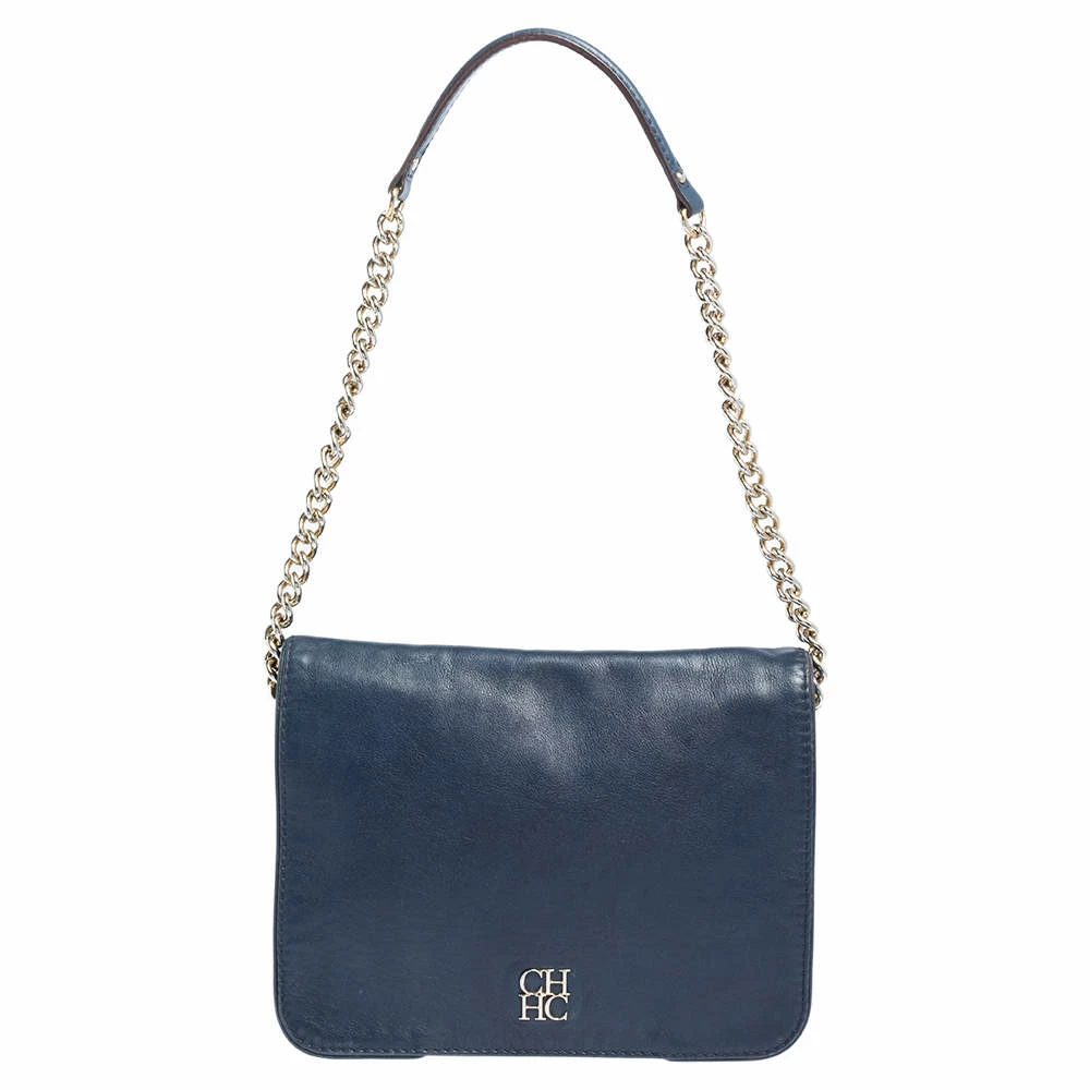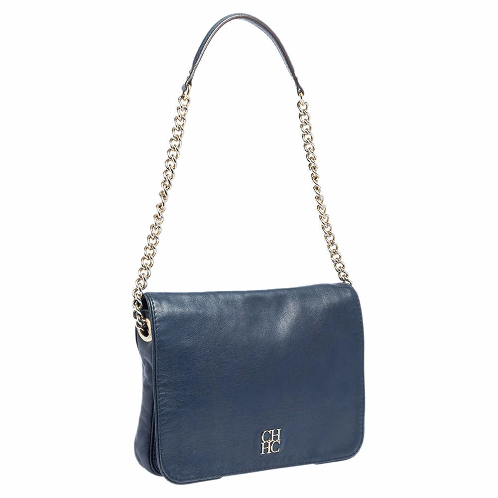 The house of Carolina Herrera has exclusively designed this elegant bag for you. It has been crafted from blue leather and adds a chic appeal to any ensemble. It has a front flap with the ‘CH’ logo that opens to a fabric-lined interior. It is complete with a shoulder strap and detailed with gold-tone hardware.