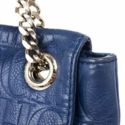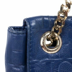 An adorable mini purse, this small CH bag is the pop of color your outfit needs. Its monogram-embossed exterior adorned with the oversized bow give this Audrey bag a cute look. The exterior has an open back pocket and a leather handle with a large chain link design. The gold-tone hardware of the handle and monogrammed eyelets give this bag a strong shine to match its blue color. The interior has a magnetic snap flap closure with textile lining, a zipped pocket, and a monogrammed plaque.