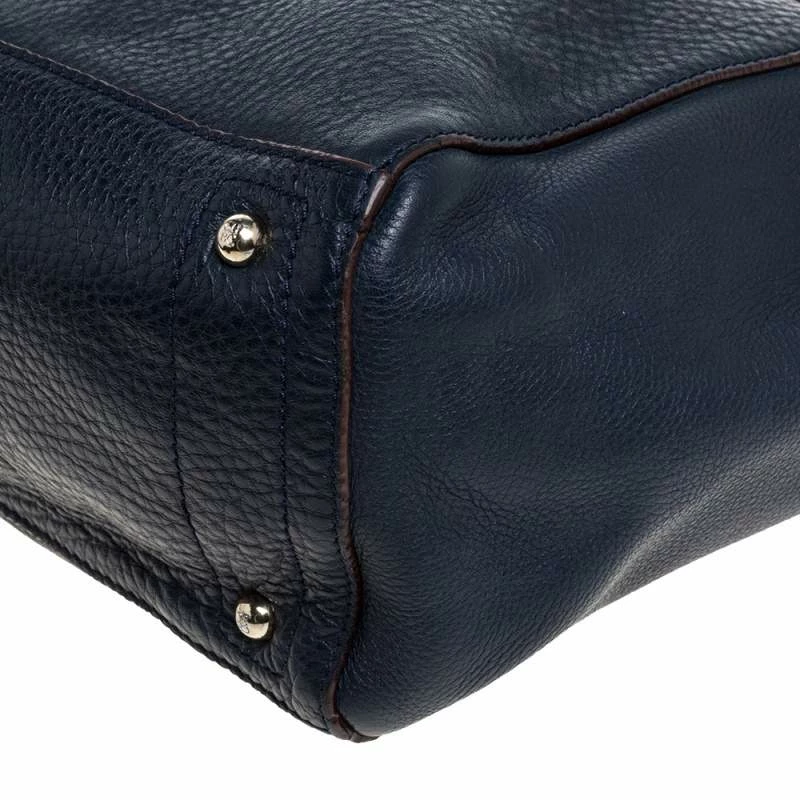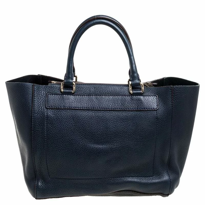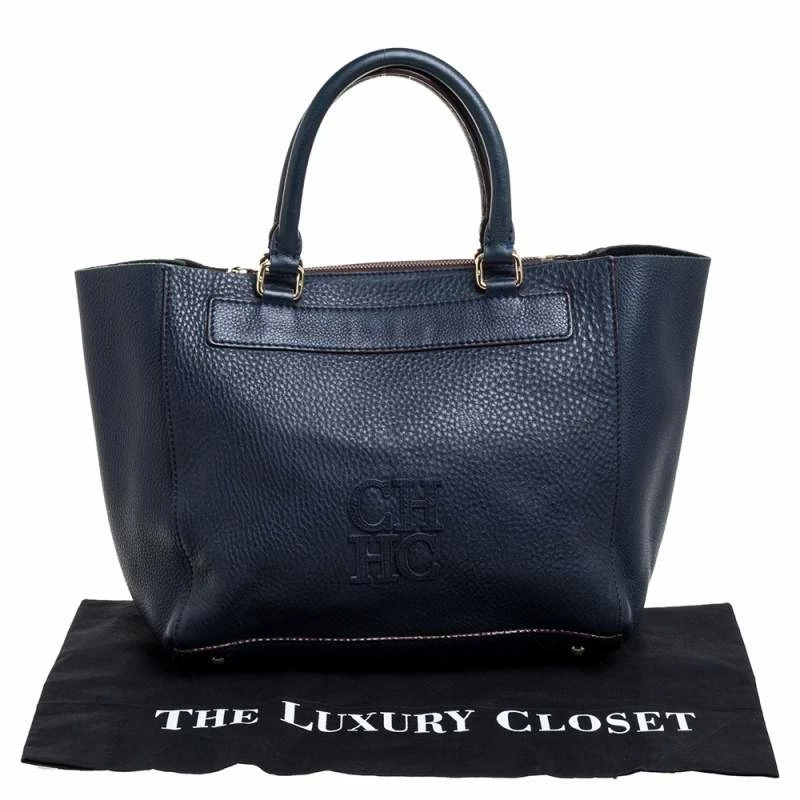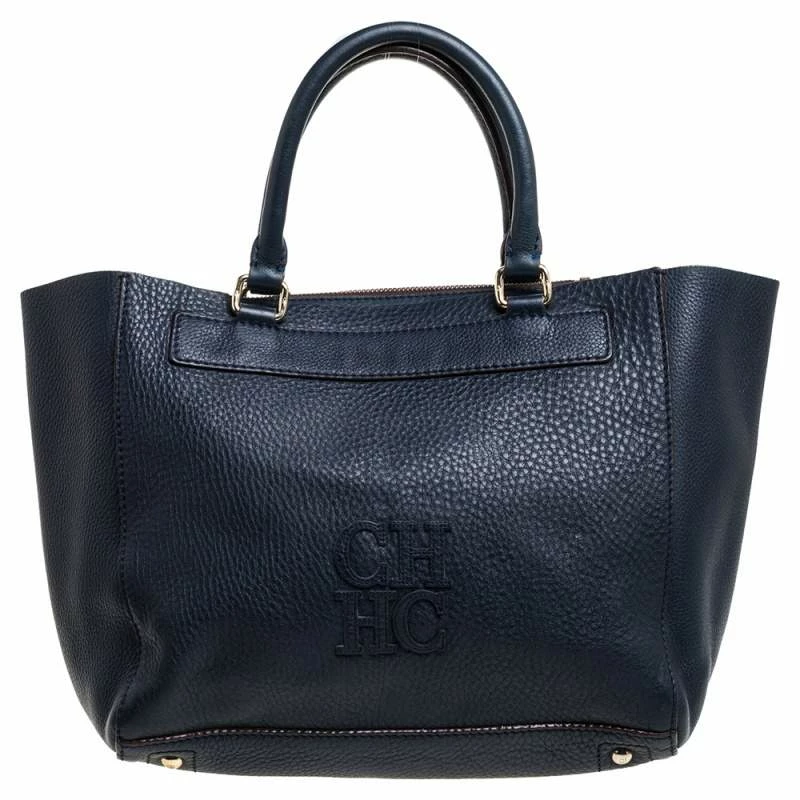 This handbag from Carolina Herrera will be your companion for years to come. The contemporary designed bag can hold more than just essentials in its well-sized interior. It is made of quality leather and perfectly held by two handles. The blue-hued bag has gold-tone hardware and logo detailing on the front.