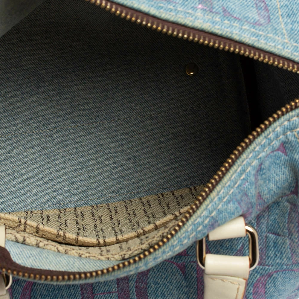 This Andy Boston bag by Carolina Herrera will make an elegant addition to your collection. The exterior features the signature monogram denim and leather. This bag is great for daily use.