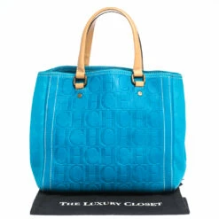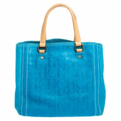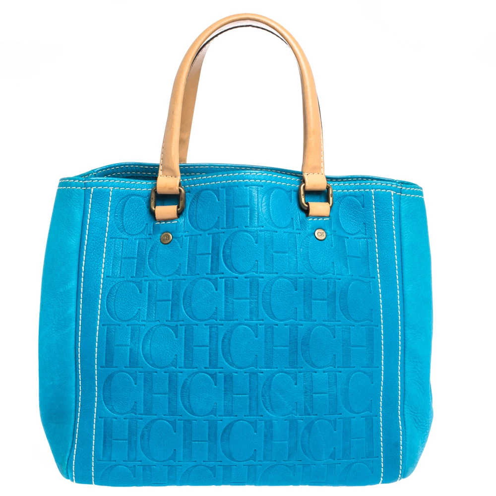 This luxurious leather tote is embossed with monogram all over. The luxurious interior is quite spacious and will hold all your essentials and more. This admirable Carolina Herrera tote in a blue shade is complete with dual top handles, gold-tone hardware and neat stitching.
