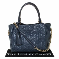 This admirable Carolina Herrera tote in a blue shade is complete with dual top handles. This luxurious leather tote is embossed with monogram all over. The fabric-lined interior is quite spacious and has one pocket for little essentials. It is finished with a shoulder strap.