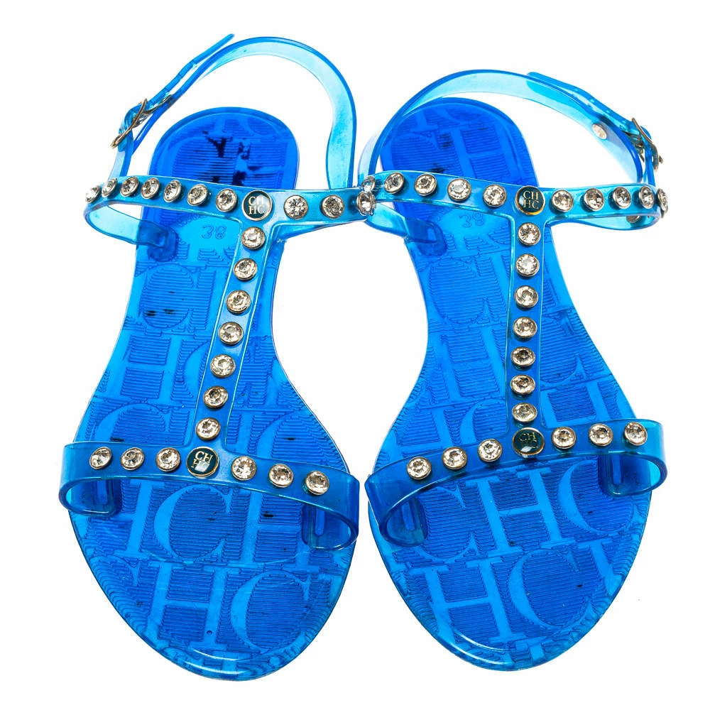 A pair of easy-to-wear sandals by Carolina Herrera. Crafted in PVC, the pair is highlighted with crystal-studded details and open toes. They come with buckle fastenings on the ankle straps and monogrammed insoles.