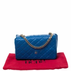 This Carolina Herrera bag is nothing but an example of pure elegance. The bag is crafted from blue quilted leather and the fabric-lined interior lends shape and offers ample space for your belongings. The bag is held by a chain-link and flaunts the brand logo on the front.
