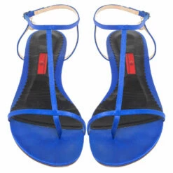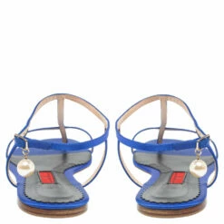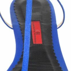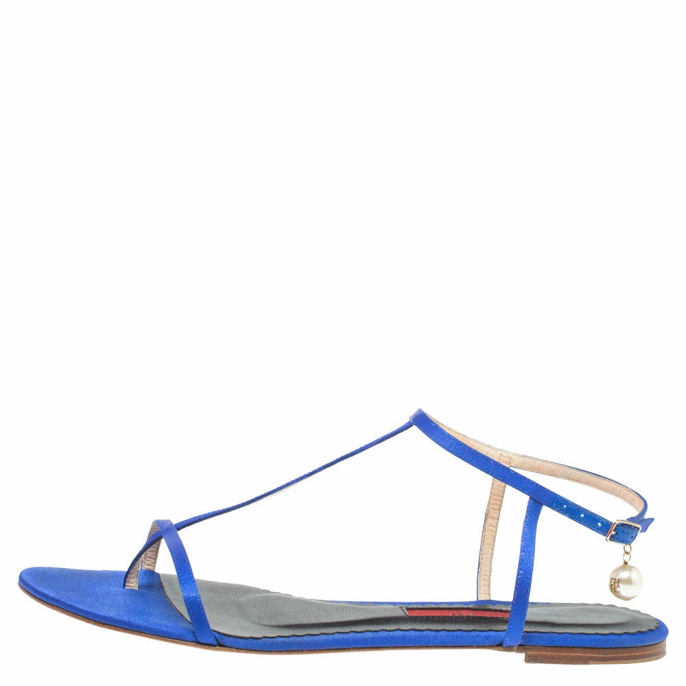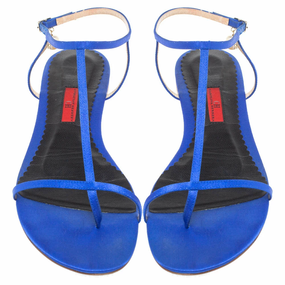 These Carolina Herrera leather T-strap sandals are perfect to just slip on and head out on those hot summer days. They are crafted from smooth blue satin and feature the gold-tone CHHC logo on a dangling pearl and buckle closures on the sides. The insoles are leather-lined for added comfort.