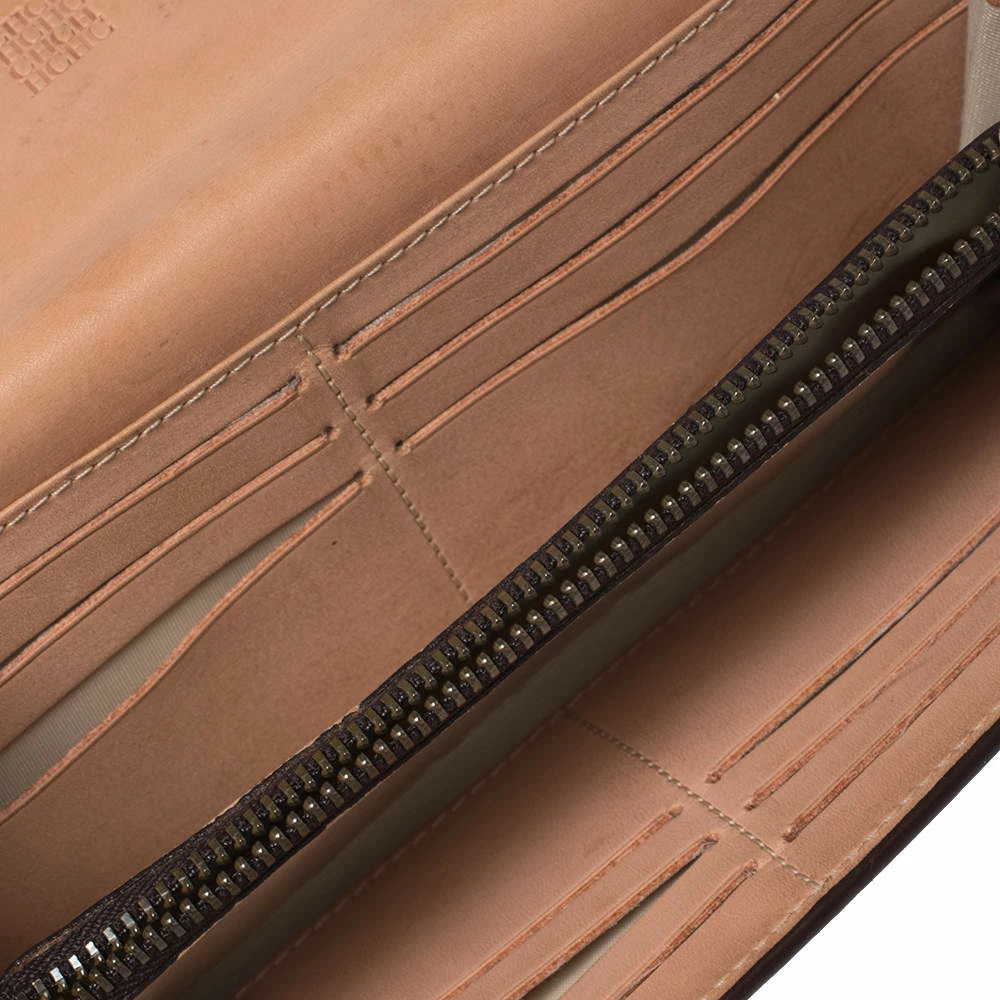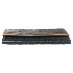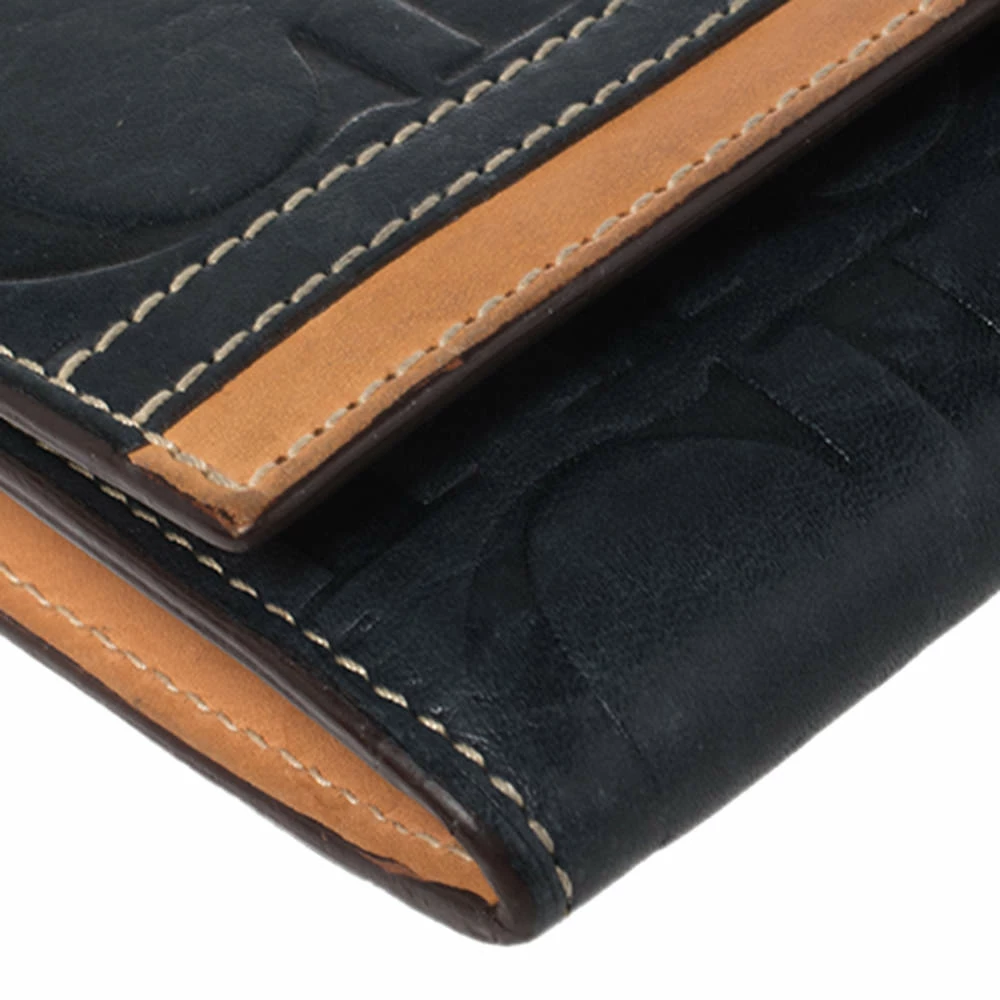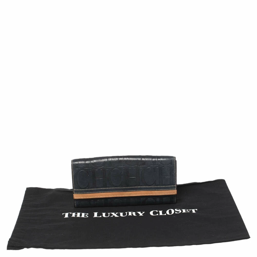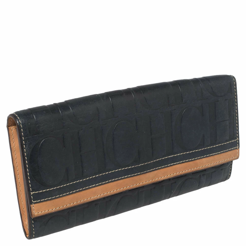 Basic essentials can be carried effortlessly in this Carolina Herrera flap wallet. Crafted from monogram leather, the durable wallet features multiple card slots, bill compartments, and a zip pocket.