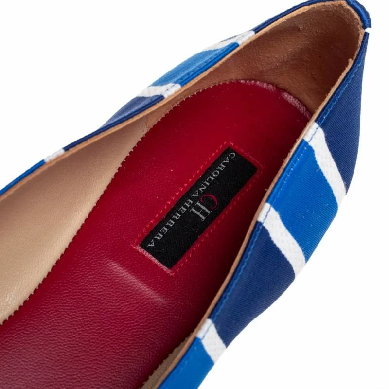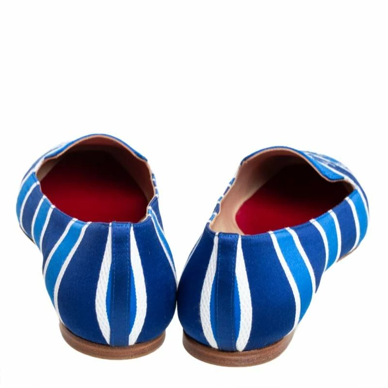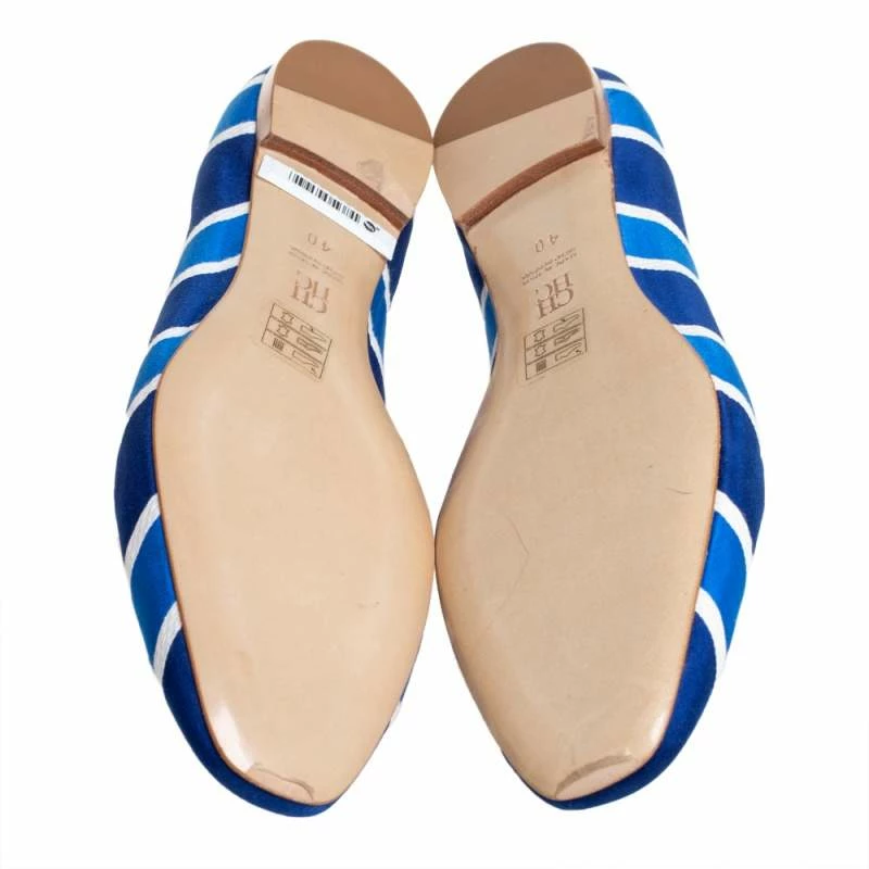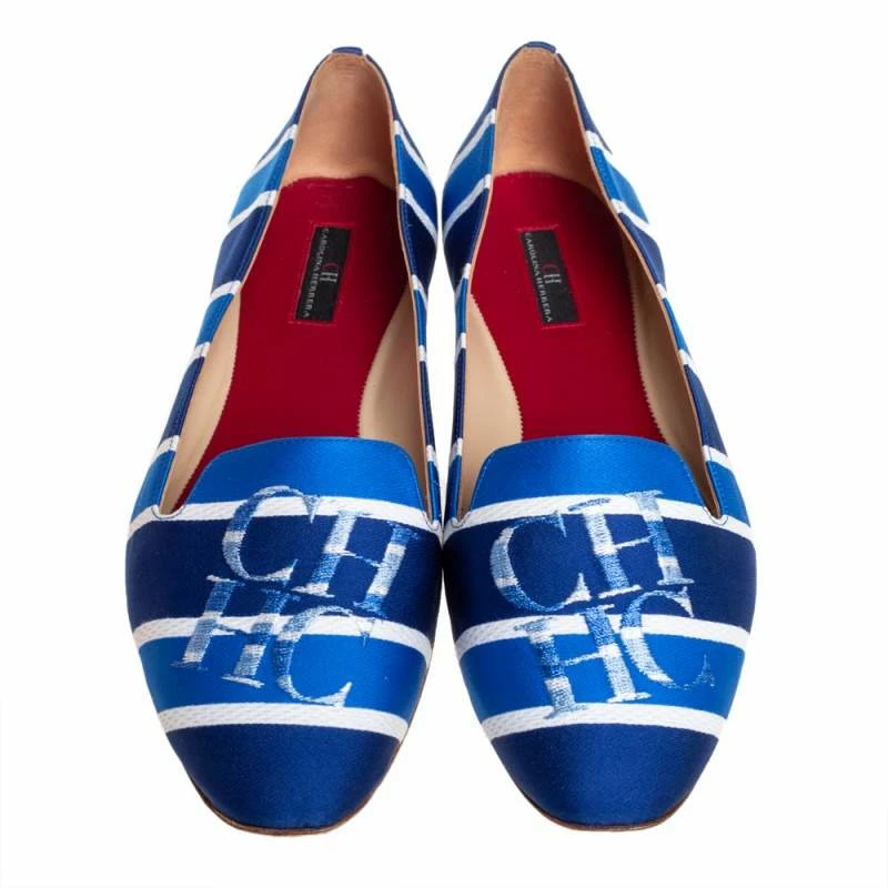 Stay cool and effortlessly stylish with this beautiful pair of Carolina Herrera Smoking slippers. Crafted in white and blue striped fabric, these shoes feature logo detailing on the uppers and leather insoles.