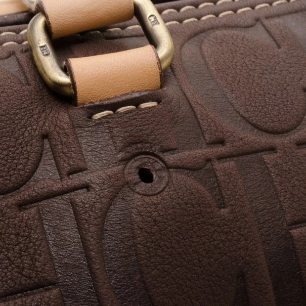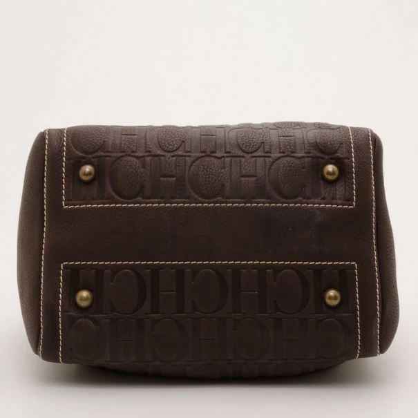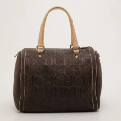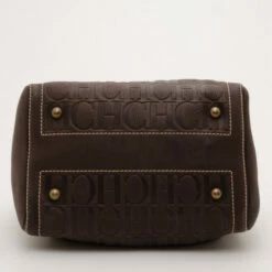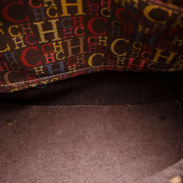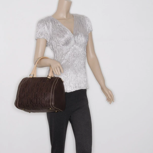 The Andy handbag collection was created by Carolina Herrera in 1974 as a tribute to her dear friend Andy Warhol, who had recently portrayed her beautifully in pop art style on canvas. This version of the classic Andy bag is crafted from soft espresso colored leather that is embossed with the CH monogram. It is accented with contrasting white stitching, double tan leather handles and silver hardware. The spacious open interior is lined with suede and features a colorful fine canvas monogram pocket.Original Retail Price: US $600Condition: Gently Used (Medium patina and small marks on leather trim and handles, one CH stud missing, two small and dull marks on side and on bag’s exterior and largely clean interior)Dimensions: 25 CM(L) 26 CM(H) 18 CM(W)Handle Drop: 12 CM (Distance between handle and top of the bag)Material: Leather Exterior, Suede and Canvas InteriorHardware: Gold-toneIncludes: Original Dustbag