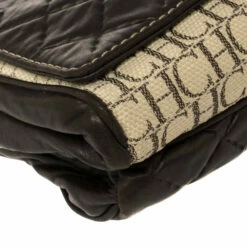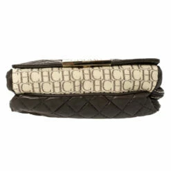 This adorable flap bag by Carolina Herrera is crafted from brown & beige, quilted leather and Monogram coated canvas. Highlighted with the gold-tone brand label on the flap, it comes with a chainlink and leather shoulder strap and a fabric-lined interior with a slip pocket on the inside.