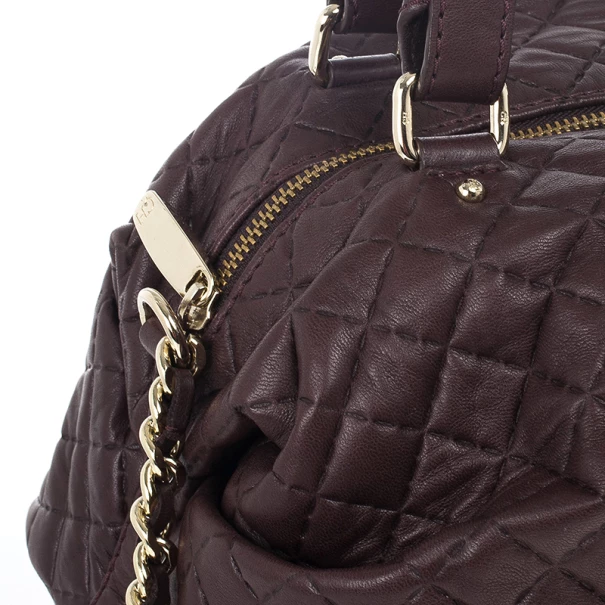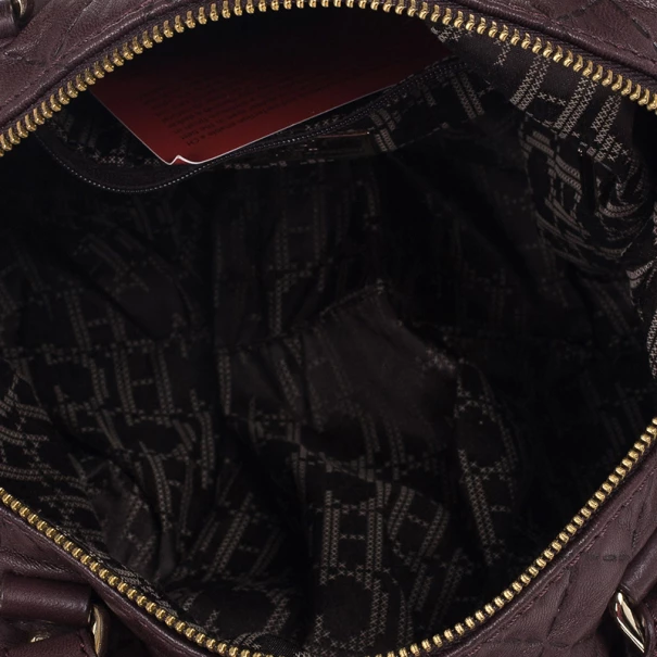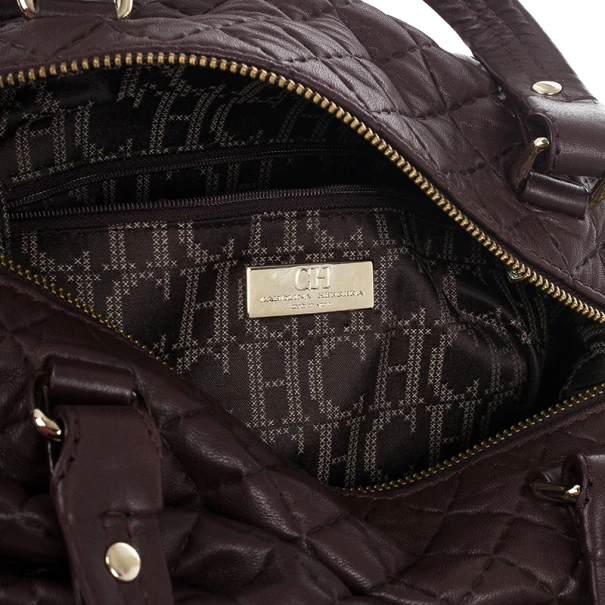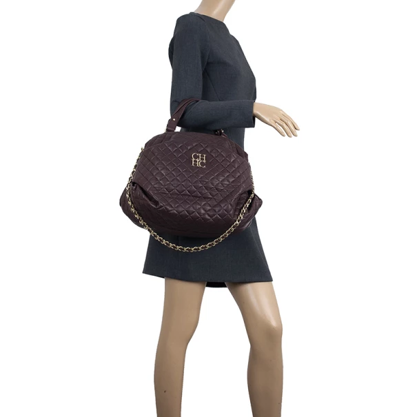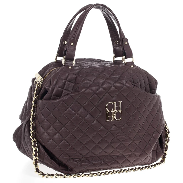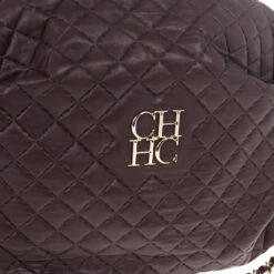 Stand out with this Carolina Herrera bag, characterized with its burgundy color and smooth leather. Designed with a leather exterior and a quilted stitching design, the light gold tone hardware creates a classy combination, having the metallic CH logo on the face of the bag. It holds two handles, as well as a shoulder strap made of chain and leather. The wide interior of this bag is imprinted with the brand’s monogram, and has one zip enclosed pocket.