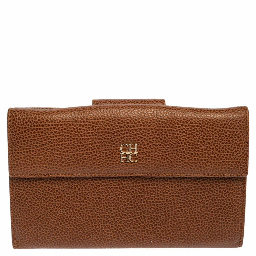 Stylish wallets are a must-have! This Flap wallet from the house of Carolina Herrera is crafted from leather. Styled as a single fold with a flap, the wallet is equipped with multiple slots and a well-sized compartment at the back. This wallet is definitely sleek and sophisticated.