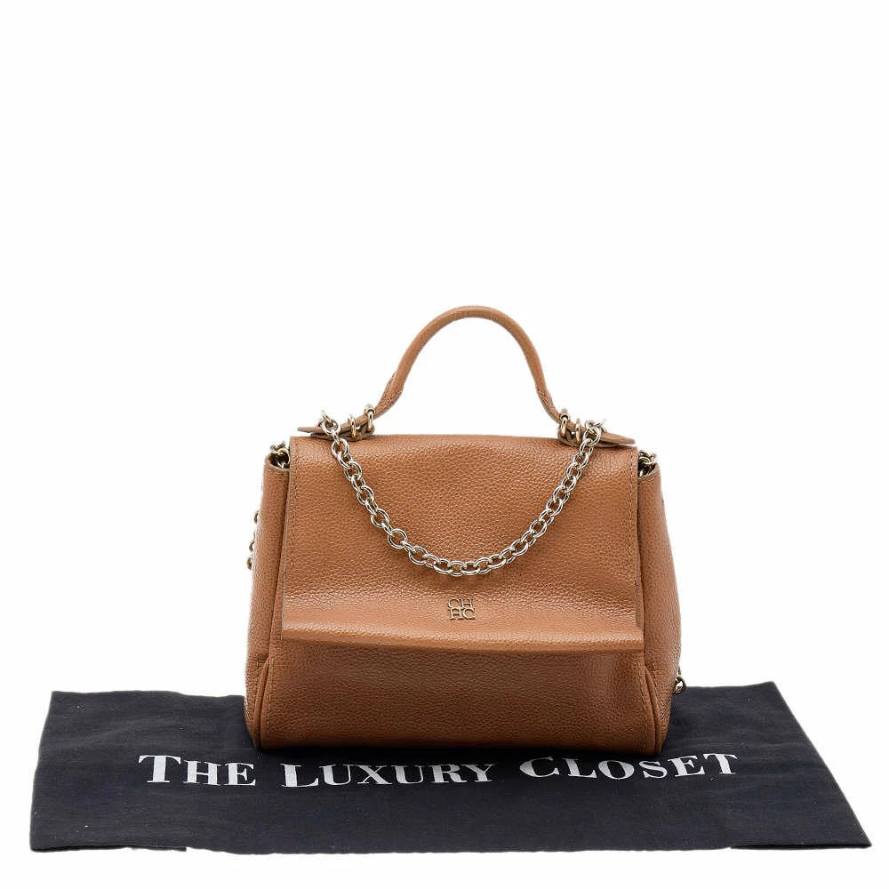 This Minuetto bag from the house of Carolina Herrera is something you would go to season after season. It has been crafted from a versatile brown leather body and features a smooth flap style. It comes with a chain shoulder strap in addition to a flat top handle. It has a subtle slouch to the structure and opens to a spacious interior that can easily hold your day to evening essentials.
