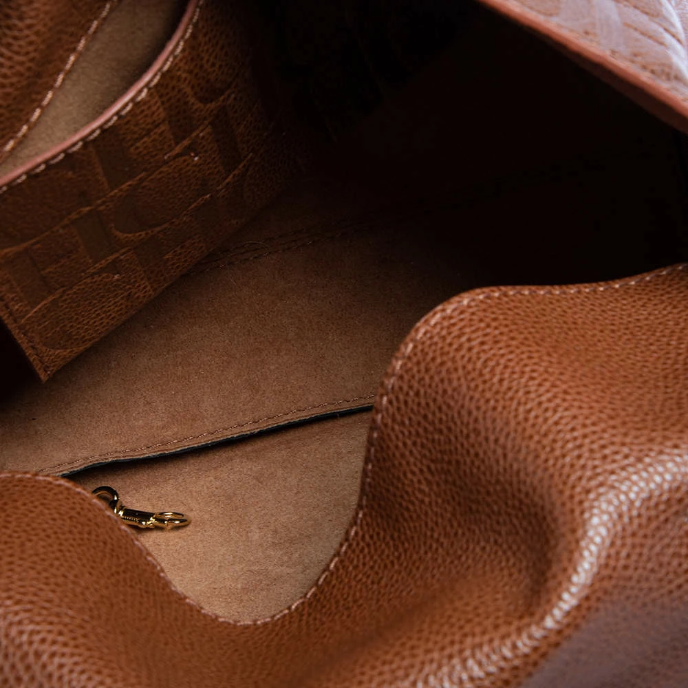 This Minuetto bag from the house of Carolina Herrera is something you would go to season after season. It has been crafted from a versatile brown leather body and features a smooth flap style. It comes with a chain shoulder strap in addition to a flat top handle. It has a subtle slouch to the structure and opens to a spacious interior that can easily hold your day to evening essentials.