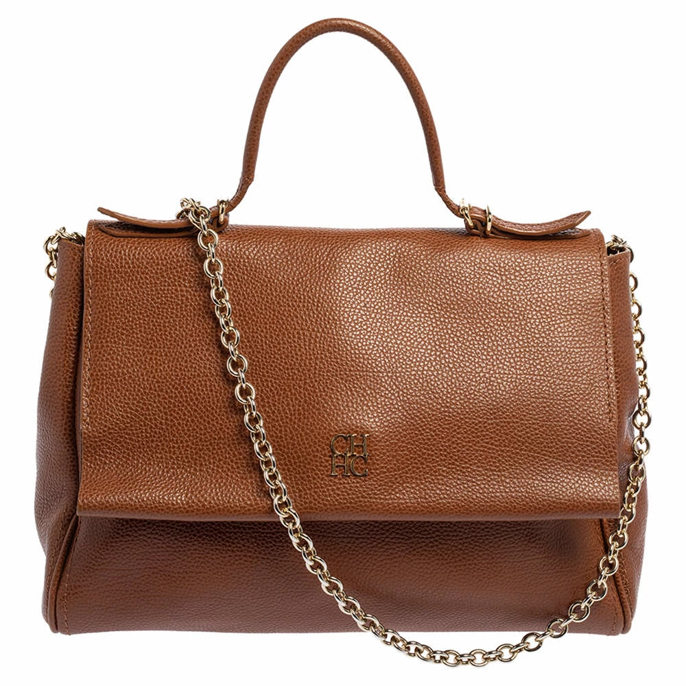 This Minuetto bag from the house of Carolina Herrera is something you would go to season after season. It has been crafted from a versatile brown leather body and features a smooth flap style. It comes with a chain shoulder strap in addition to a flat top handle. It has a subtle slouch to the structure and opens to a spacious interior that can easily hold your day to evening essentials.