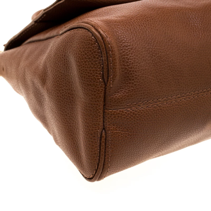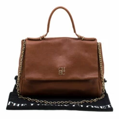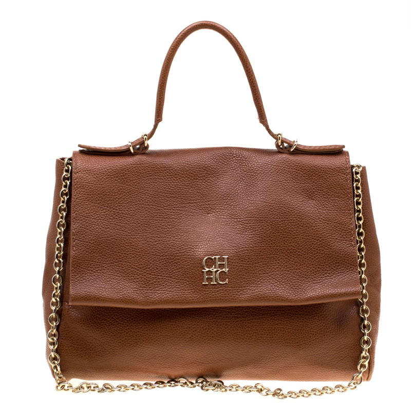 This Minuetto flap bag from the house of Carolina Herrera is something you would go to season after season. It has been crafted from a versatile brown leather body and features a flap style. It comes with a chain shoulder strap in addition to a flat top handle. It has a subtle slouch to the structure and opens to a spacious interior that can easily hold your day to evening essentials.