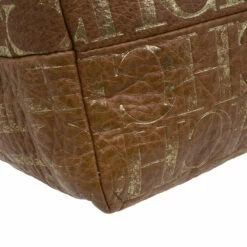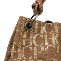 This glittery yet sophisticated bag by Carolina Herrera will add plenty of glamour to your wardrobe. Crafted from brown leather with logo imprints in golden color, it features leather straps with knot design and a snap closure. Its large fabric interior is attuned to keep your essentials intact.