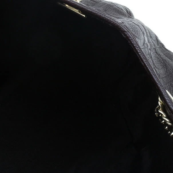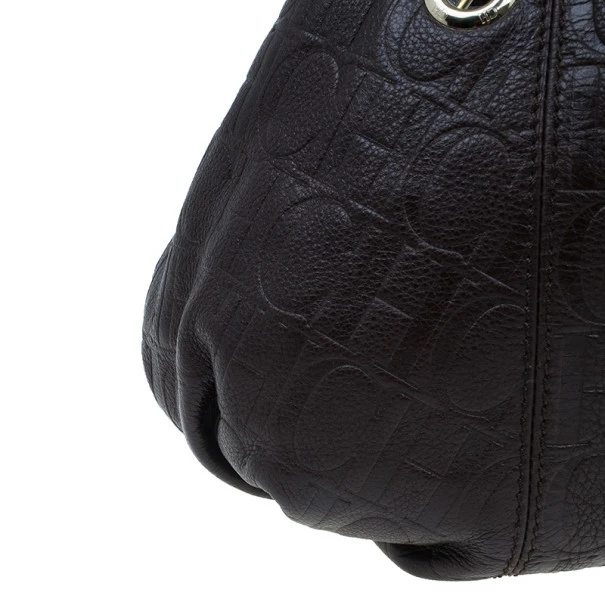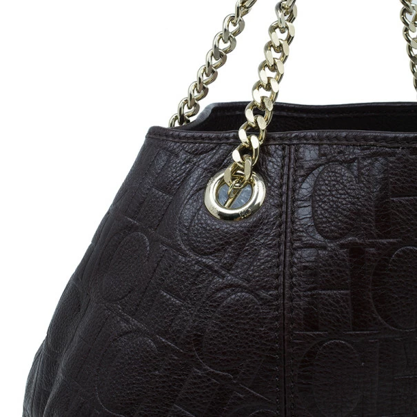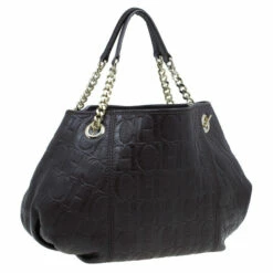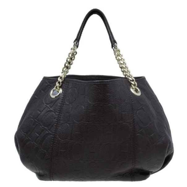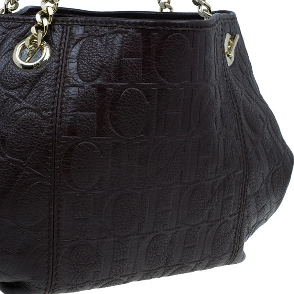 This Carolina Herrera tote is super practical! This cute bag is made from monogram brown leather, and adorned with contrasting gold-tone hardware. It features gold chain-link handles with leather straps matched with its pleated corners. Its interior is lined with smooth black fabri and houses a single zipped pocket for storing smaller items. It is suitable for daily use and can be paired with almost any outfit!